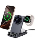 Stylish Charger - The 708M features UV transfer printing with an optical texture on the phone charging section and a metallic paint-coated body for a high-end look and durability. This powerful charger also serves as a stylish accessory, making it a great gift. Curved Dimming Clock: The 708M features a high-pressure molded 3D LED display with a dimming clock and charging indicator light. 4 brightness levels ensure a restful sleep, and the 12/24-hour format can be customized. Cooler & Faster: The charger uses an intelligent temperature control system to optimize charging efficiency, prevent overheating, and protect battery health, ensuring each charge is fast, safe, and reliable. Take It Anywhere - The compact, foldable design makes the charger as lightweight and portable as the iPhone 16 Pro Max. Slip it easily into your bag or pocket. The watch charging section rotates 0-180° and hovers freely for versatile charging angles. 3-in-1 Wireless Charging Station: The 708M can simultaneously charge the iPhone 12-16 series (iPhone 8-11 series requires a magnetic case), Apple Watch series, AirPods 4 (ANC)/3/Pro 2/Pro and other earbuds that support wireless charging. (Note: Adapter not included) Fun Gear Sound: Rotating the watch charging section emits a crisp gear sound, an elegant melody merging technology and aesthetics, making each charge a graceful encounter with time, technology, and beauty.