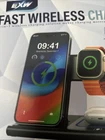 Experience the convenience of charging your iPhone, Apple Watch, and AirPods all at once with this 3-in-1 Wireless Charger. Designed for Apple users, this charging dock features a sleek black plastic build with a ultra slim, thin fit design that seamlessly integrates with your desktop or desk. With a 12V voltage rating and magnetic wireless charging standard, this charger offers a fast and efficient charging experience. The dock comes with a 3 ft charging cable and a holder for easy access. The EXW brand charger is perfect for those who want to keep their devices charged and organized in one place.