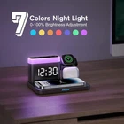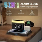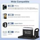 Wireless Charger Station, 5-in-1 Alarm Clock with Wireless Charging Station, 7 Night Lights, Inductive Mobile Phone Charger for iPhone 15/14/13/12/11/Pro/Max Samsung, Apple Watch 9/8/7/6/SE, AirPods ❗❗❗ Note: Watch cable is not included. ✔️【 3-in-1 wireless charging stations for your phone/Apple Watch/Apple Airpods 】 Provides multiple device charging stations for your phone/Apple Watch/Apple Airpods and comes with digital alarm clock, 7-colour night light function. Say goodbye to messy cables and save space for your bedside table. ✔️【 Compatible with all Apple Android phones with wireless charging, compatible with iPhone 14/14 Pro/14 Pro Max/14 Pro Max/14 Pro Max/14 Plus/13/13 Pro/13 Pro Max/13 Pro Max/13 Mini/12/12 Pro/12 Pro Max/12 Mini/11/11 Pro/11 Pro Max/X/XR/XS/XS Max/8/8/8Plus; Samsung Galaxy S22 Ultra/S22+/S22/S21 Ultra/S21+/S21/S21 FE/S20; AirPods 1/2/3/Pro; Apple Watch 8/7/6/5/4/3/2/SE/SE/Ultra ✔️【Safe and easy to use】 The night light of wireless charging has a 7 colours and 10-100% brightness setting (or turn it off). It is convenient for you to read, breastfeed and sleep better ✔️【 How to use 0-100% light】 The brightness of the LED display is adjustable from 0 to 100% via rotary knob. There are 3 adjustable volume levels and 12/24 hour mode for you to choose. Snooze allows for an additional 9 minutes of snooze. ✔️【 Made and batted 】 AC powered, but can be secured with 3 x AAA batteries (battery is not included). The time is displayed and your alarm clock wakes you up even in the event of a power failure in the morning. You will receive the wireless charging station 5 in 1, type C power supply and the user manual (English language not guaranteed). ✔️【High protection】The wireless charging station has an automatic shut-off when full to protect your phone, and 5S display alarm for successful charging, it is not too bright and too long to disturb your sleep. Equipped with heat sink and upgrade charging pads, avoid damaging your phone by heating while charging. (Can be charged by ≦3 mm phone case)