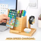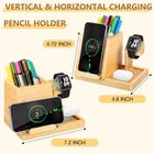 ⚡【4 in 1 Charging Station】Compatible with iPhone 16|15|14|13|12 Pro Max|Pro|Mini 11 Pro Max|Pro XS Max|XS|XR|X 8 Plus|8 or Android; for iWatch 9|8|7|6|5|4|3|2|SE, for Airpods Pro|3|2, this 4-in-1 charging station combine the functionality of a wireless charger, and convenient pen holder or makeup brushes storage box makes it a versatile addition to your space 🚫Watch Charger NOT Included ⚡【PD22.5W Fast & Efficient Charger】Experience the convenience of fast and efficient charging with the 15W wireless charging capability for iPhone devices, which will be fully charged in just 2–3 hours. The station also supports 5W wireless charging for Apple Watches and AirPods, say goodbye to tangled cords and slow charging speeds as this bamboo charging station ensures a rapid power-up for your Apple devices ⚡【Certified Safety Protect Devices】 Designed with safety in mind, this charging station includes over-current, over-voltage, and over-heating protection, as well as foreign object detection to prevent overcharging and protect your device's battery. The high-quality rubber pads on the bottom ensure stability and prevent slipping or surface scratches. ⚡【User-Friendly Design & Elegant Home Decor】Not only does this bamboo wireless charging station offer a powerful charging solution, but it also serves as a decorative piece for your home. The exquisite, minimalistic design and 100% organic bamboo material add a touch of elegance to any space, whether placed in the bedroom, living room, or study ⚡【Case Friendly】Enjoy hassle-free charging without removing your phone case. Our chargers for multiple devices transfers power directly through a phone case up to 0.2 inches (5 mm) thick, saving you the hassle of removing your ultra-thin case. Please remember to remove credit cards and holders before charging ⚡【Thoughtful Gift Choice】 Packaged beautifully with modern minimalism, this bamboo wireless charging station makes for a meaningful and practical gift for various occasions such as birthdays, celebrations, and holidays. Universally appealing and functional, it is a perfect gesture for Apple enthusiasts and tech-savvy individuals looking for a sophisticated charging solution