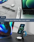 About this item 【Created for Apple Ecology】Through our understanding and upgrading of the entire Apple ecological wireless technology, GLAHYO has designed a 3-in-1 magnetic wireless charger that conforms to Apple's environmental theme. It perfectly matches the simple design of the magsafe charger and the low loss rate of the charging cable, and there is no need to worry about compatibility issues. GLAHYO Apple charging station Can power iPhone 13 12 Pro Max/Pro/Mini iWatch 7/6/SE/5/4/3/2 AirPods. 【Intelligent Safety Protection】GLAHYO Wireless Charger Stand is officially authorized by CE, FCC, RoHS and WPC on QI wireless charging protocol, with built-in overheat protection, short circuit protection and foreign object detection to keep you and your device safe. 【0-45 Degree adjustable】The phone charging stand can adjustable up and down 45 degrees for a perfect view,you will enjoy it so much when video conferencing in portrait or simply rotate to watch videos in landscape. 【More than just a wireless charger】GLAHYO wireless charger sstation simple design makes your life more convenient. Beautiful design. powerful functions. Strong magnets ensure optimal alignment of the phone with the charging area. The non-slip bottom adds extra stability to your device. It is a good choice for carrying and displaying at home.There is an 18W QC3.0 adapter under the box, please use this adapter to get a better performance. 【High-quality customer service support】In line with the purpose of serving customers, we provide customers with the best quality customer service. If you have any questions about magsafe wireless charger stand before or after purchase, please email us and our professional customer service team will give you a satisfactory answer within 12 hours. Product Description Free your hands All you need to do is just place your iPhone 12/13 series on the stand Magnetically, offers you comfortable using experience, just free your hands while charging it but Only compatible with MagSafe enabled cases. Superior Safety LoPerMas Wireless Charger Stand is officially authorized by CE, FCC, RoHS and WPC on QI wireless charging protocol, with built-in overheat protection, short circuit protection and foreign object detection to keep you and your device safe.Stop charging automatically once the devices are fully charged. Aluminum alloy material Different from all charging station on the market, the exterior of our charging station is made by aluminum alloy material,rather than cheap and poor plastic shell,we invested all the money to our materials and we only adopt most expensive materials to keep quality,never cut corners for p r ice. More than just a wireless charger Enjoy your wireless convenience and efficiency LoPerMas wireless charger simple design makes your life more convenient. Beautiful design. powerful functions. Strong magnets ensure optimal alignment of the phone with the charging area. The non-slip bottom adds extra stability to your device. It is a good choice for carrying and displaying at home. Product Specification Input:9V/2A,12V/2A Output:1.Phone 7.5W 2.Watch 2.5W 3.Airpods 2-5W Standard Accessories 3-in-1 Wireless charger Type-C cable User manual Applicable Devices For Phone:iPhone 12 Pro Max,iPhone 12 Pro,iPhone 12 ,iPhone 12 mini For Watch:Apple Watch 2/3/4/5/6/7 For headset:AirPods,pro,Xiaomi AirDots Youth version,wireless charging with phone