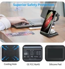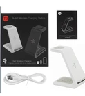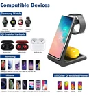 Product Specifications Name: T3 3 in 1 Wireless Charger for Samsung Material: ABS + PC fireproof material, interface: TYPE-C, standard: QI standard Size: about 133*70*107mm, weight: about 192g, Type-C cable length: about 106cm QI smartphone output: 5W / 7.5W / 10W Input voltage/current: 9V2.7A /12V2A, charging power: 10W/7.5W/2.5W (Watch product) Package contents: 1 x wireless charger main unit, 1 x TYPE-C charging gable, 1 x English manual Please Note 1. This wireless charger for Samsung is NOT compatible with Apple Watch. 2. In order to ensure the stability of charging, it is recommended to use QC3.0 9V2A adapter. Adapter is not included in the package. If you use a QC3.0 power adapter above 20W, the charging speed is faster. 3. Remove thick objects such as cases with a thickness of 5 mm or more, metal cases, magnetic cases, notebook-type cases, smartphone rings, credit cards, coins, metal objects, and magnetic objects before charging. 4. If your device is not charged when placed, it may be detected foreign metal. Please make sure there are no metals or magnets on the phone, align the phone and the the coil of charger to charge. 5. iOS 11.2 is required to access 7.5W fast charging for iPhone. 6.Galaxy S21 5G SCG09 / Galaxy S20 5G SCG01 can be charged. However, Galaxy A Series cannot be charged. A Series does not have QI function. 7.If the smartphone is large, it can only be charged horizontally. For example Galaxy S22 Ultra/S21/iPhone13 pro max/Z Flip Series,etc. 8. Please remove your phone case before charging if the thickness is >5 mm, or if the phone case makes your phone size longer than 164 mm. 9. Make sure to disconnect the device from power when cleaning. 10. It is normal and safe to hear a humming noise when very close to the charger.It means that this wireless charger is adjusting its temperature to achieve a more efficient charging speed. 11. If your device can not be fully charged, this may due to high environmental temperature, please recharge after the temperature is lowered. Our charger has temperature control to protect your device when charging.