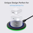 Wireless Charger Qi-Certified 7.5W Wireless Charging Compatible with iPhone Xs MAX/XR/XS/X/8/8 Plus,10W Compatible Galaxy Note 9/S9/S9 Plus/Note 8/S8,5W All Qi-Enabled Phones(No AC Adapter) 【3 Charging modes Available for Different Phones】7.5W charging mode is for iPhone 16/15/14/14 Plus/14 Pro/14 Pro Max/13/13 Pro/13 Mini/13 Pro Max/12/SE 2020/11/XS/XR/X/8 with latest iOS System; 10W charging mode is compatible with S22/S22 Ultra/S21/S20/Note 10/S10/S10E and so on; 5W charging mode works on Any wireless-charging-enabled devices like Google Pixel 3/3XL/4XL and other wireless-charging-enabled phones. Note: Adapter is Not Included, QC 2.0/3.0 adapter will be highly recommended. 【Unique Design Perfect for AirPods】 It is compatible with AirPods (with wireless charging case) and AirPods Pro. The size of the with AirPods fits perfectly into the charging area of the wireless charging pad, perfect wireless charging companion for AirPods, easier to find the “Sweet Spot”. Also, both top and bottom have a rubber ring, will keep your device in place and prevent slippage. 【Safer and Easier to USE】Exclusive Multifunctional Intelligent Protect Technology provides temperature control, surge protection, short-circuit prevention. Besides that, this wireless chargers is made of ABS Material which is fire-resistant, and has a UL Certificate, you can purchase it at assurance. Double guarantee and dual safety provide you safety experience. To get better experience, we would like you to take off the phone case and use the adapters recommended (NOT INCLUDED). 【More User-friendly Design】SLEEP-FRIENDLY DESIGN. The GREEN LED Indicator will flash for 3s if power source is connected, then turn on for 16s if recognizes your phone well. Entering charging mode, light will turn off and keep the whole charging process SLEEP-FRIENDLY. 【PACKAGE & SERVICE】You will get 1 x Wireless Charging Pad, 1 x 3. 3ft USB Type C Cable, 1 x User Manner and reliable 12-hour response service. At , zero risk purchase is for every customer's smiles.