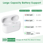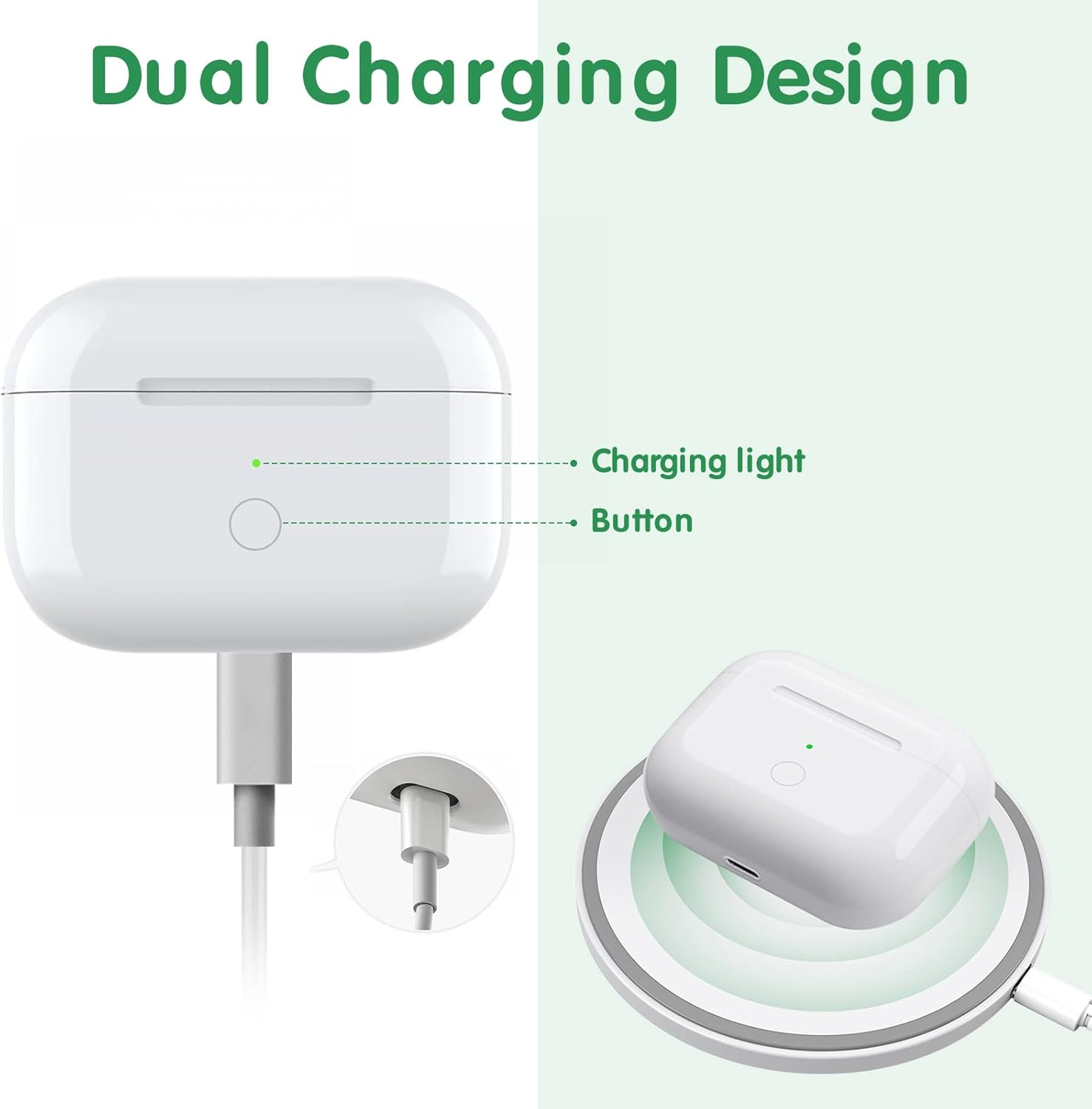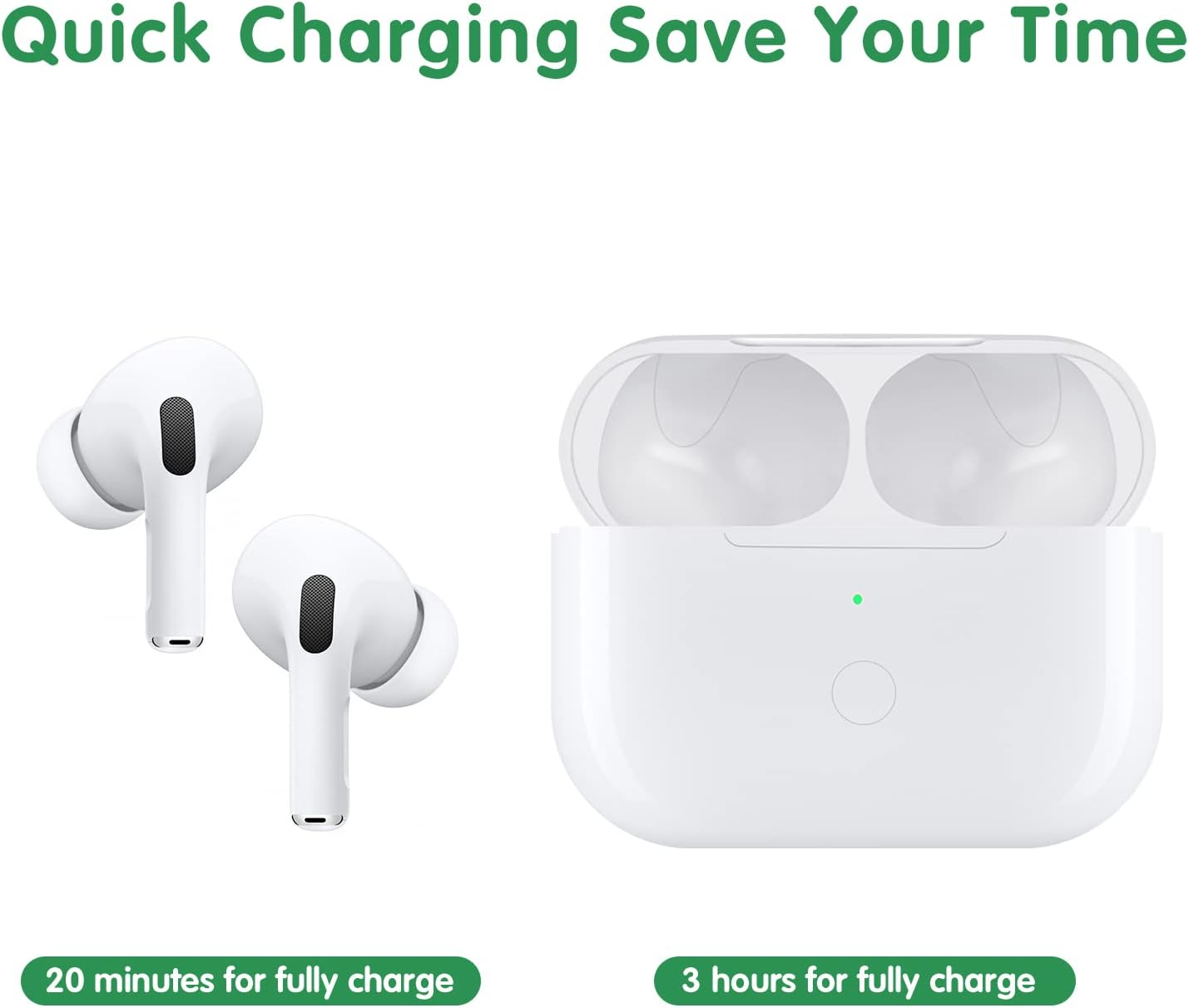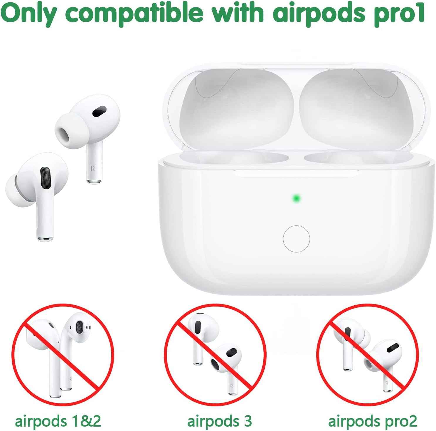 đăPerfect Charging Case Replacementă If you are worry about the lost original Air pods Pro charging case? This charging case (DO Not include Air pods Pro) will be your best choice for dealing you urgency, it can compatible with airpods pro well. đ€ăLarge Battery CapacityăBuilt-in 660 mAh battery for our AirPod Pro charger case, it can fully charge AirPods Pro in 15 minutes and use 5 times when the charging case is full of power. You don't need to worry that the Air Pods Pro is power shortage if you are going outside. đ€ăUpgraded Connecting DesignăOur Air Pods Pro charging case replacement design with a bluetooth pairing sync button, which can automatically and sensitively connect the phone or other devices when used again, more convenient for your daily life. đ€ăCharging in Dual MethodăThe AirPods Pro charger case can be charged by the Qi-compatible wireless charging pad or standard cable connector, dual charging method for more easy charging. It needs 3 hours to fully charge. When the case turns into green light, it means the charging is done. đ€ăSatisfied Customer ServiceăWorking like the original AirPod Pro Charging case, this wireless charging case can totally meet your requirements in quality. If you have any confusion, please feel free to contact us, we would provide the best customer service for you. Note: This charging case is ONLY FOR Airpods Pro, NOT FOR Airpods. Please make sure your earphone is Airpods Pro, not else this charging case DOES NOT work. perfect charging replacement