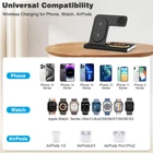 Wireless Charging Station for iPhone 15 Pro Max/14/13/12/11, 25W 3-in-1 Wireless Charger Stand & USB C Cable 3ft, Wireless Charging Dock for iWatch Ultra 9 8 7 6 5 4 3 SE, AirPods Pro 3/2, Samsung 【Wireless Charging Station for Apple】Our wireless charging station can charging for iPhone, for iWatch and AirPods simultaneously, free up your hands with truly wireless charger! Wide Compatibility with iPhone 15/15 Plus/15 Pro/15 Pro Max, iPhone 14/14 Plus/14 Pro/14 Pro Max, iPhone 13/13 Plus/13 Pro/13 Pro Max/13 mini, iPhone 12/12 Plus/12 Pro/12 Pro Max/12 mini, SE/XR/X/XS/XS Max/11 Pro Max/Pro/11, Apple Watch Ultra/9/8/7/6/5/4/3/SE, AirPods 2/3/Pro/Pro 2, Samsung. 【Portable & Foldable Stand Design】for iPhone Charging Station is foldable, lightweight, and portable, suitable for carrying in bags or suitcases. This wireless charging stand is not only great for home and office use but also for travel and trips.It serves as an adjustable-angle phone stand, can charge for iPhone either vertical or horizontal. 【Safe & Fast Wireless Charging Station】Equipped with 25W fast charger adapter, this charging station has intelligent charging current control, voltage control, temperature control, foreign object detection and the heat dissipation holes on the back of charging station, this 3 in 1 charging station for apple protect your devices from overcharge damage and ensure safe charging. 【Efficiency & Intelligent】Our Wireless Charger Dock Stand intelligent match charging 4-coil design, smart match for apple watch/iphone/airpods according to the different power requirements of devices, and greatly increases the devices high efficiency wireless charging and low power consumption in stand by mode,safely maintain the battery. 【Packing List】1Pack* 3-in-1 Wireless Charging Station, 1Pack* 25W Power Adapter, 1Pack*USB C Cable 3ft, 1*User Manual. If you have any problems on this wireless charger station, please feel free to contact us, we will offer you a solution within 24 hours.