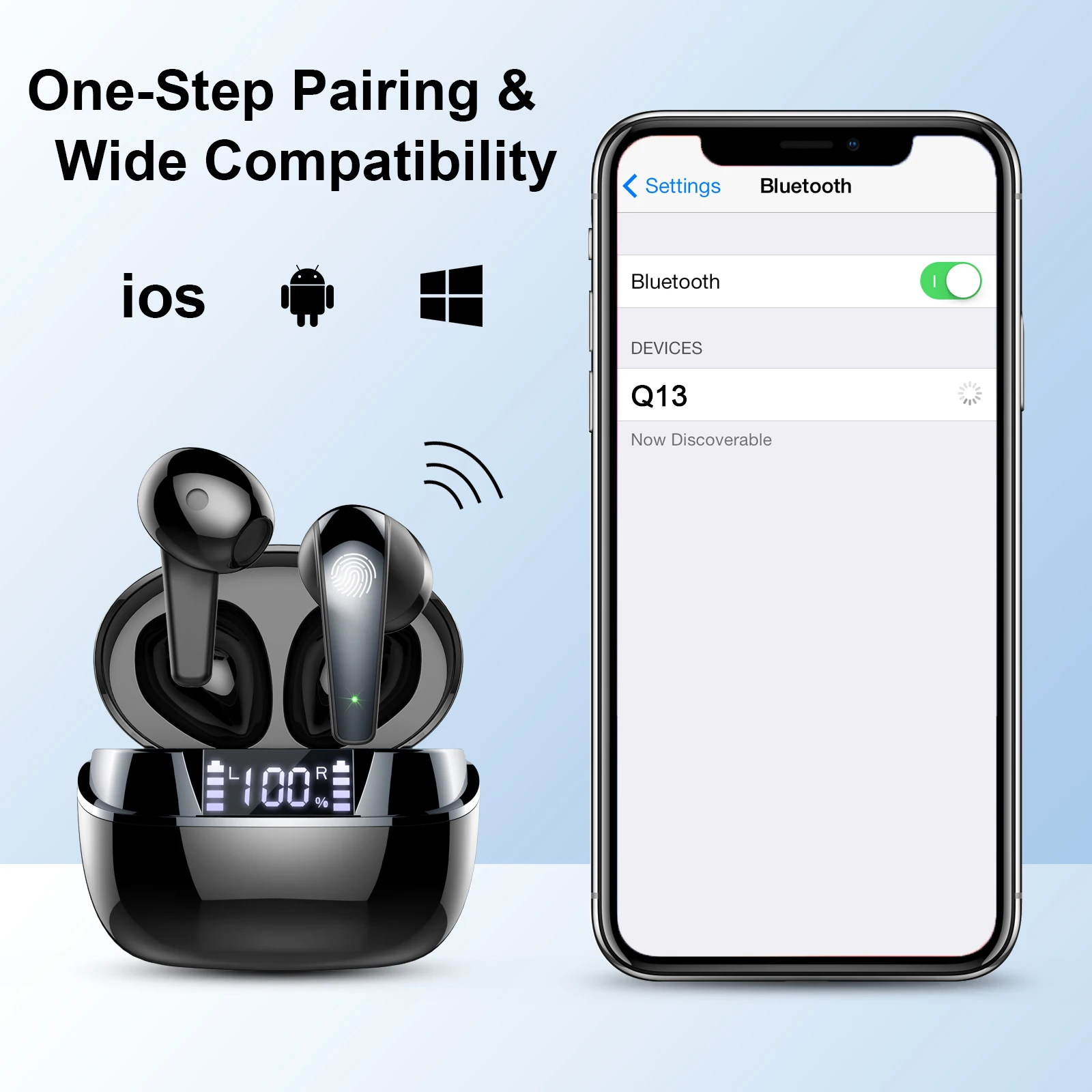 These wireless earbuds are a game-changer! The Bluetooth 5.3 connection is super stable, and the dual mics make calls crystal clear. The 35-hour battery life is insane—I barely need to charge them. Comfortable fit, great sound quality, and the touch controls are super responsive. Totally worth it!