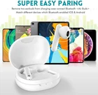 About this item 🎧One-Step Pairing Then Enjoy Quality Sound: The bluetooth earphones will automatically pair with each other when you take them out of the charging box. Connect with devices manually for the first time, and then automatically connect every time you turn on Bluetooth and take out the earbuds. Hi-Fi stereo and deep bass provide unique stereo sound quality 🎧Bluetooth V 5.0 Wide Compatibility: Your device which with Bluetooth-enabled such as tablet, laptop can be connected with the wireless blue tooth ear buds. With bluetooth 5.0, true wireless ear buds offer you an unparalleled audio experience with faster transmission speed, stronger connection stability, and longer range of bluetooth 🎧Ultra-lightweight More Comfort Fit: The light true wireless earbuds 4.5g for each, still comfortable after hours of wear. Ergonomic design make the cordless ear phones stay firmly in your ears when walking or gym. IPX5 sweatproof bluetooth wireless earbuds perfect for running and exercising 🎧20H Long Play Times Earbuds with Case: Up to five times that the charging case can recharge the wireless headset, up to an additional 20 hours of battery life with the charging case to keep TWS wireless air buds going throughout the day. And a single 1.1hour charge gives you a full 4 hours of calling or 6 hours listening 🎧Smart Touch Control Prevent Accidental Touch: Upgrade touch sensor. Not worrying for the accidental touch to skip/pause etc. when your hair/pillows touch the bluetooth earbuds. Tap the phone buds to play or pause, answer/ hang up, skip backwards/forwards, volume-/volume +, activate Siri. You can do all of these with headphones. And Mono mode allows you to leave one ear free Product description No wires. No stopping you. Does your wired headset distract you when you are exercising? Now, your moves just got a whole lot smoother - with our Wireless Earphones you won’t have to worry about your cords tripping you up while you’re perfecting your Running Man. With this wireless headphones bluetooth, get back to using your brainpower for the important things in life. Bult-in Mic Clear call Call quality is greatly improved in this upgrade in-ear earbuds. Call audio and mic also plays in both headphones, making conversations even clearer on a daily call or in your online meeting. Long Battery Life with Charging Case The headphones offer 6 hours of continuous music playback on a full charge, with 20 hours of additional power available from the charging case, so you can take your music with you wherever you go. Plus, the case is equipped with a USB-C battery jack, allowing you to recharge the case quickly when you need to do so. Smart Touch Control As there are no wires connected to the headphones, controls and a built-in mic are situated on the headphones’ housings, giving you full, convenient control of your music and phone calls without needing to touch your smartphone or other paired device. It will make your workout more freely. One button controls all aspects of the earbuds. -Double Tap (L/R)-Play/Pause; -Hang up -Triple tap (L)- Previous track -Triple tap(R)- Next track -Press Once (L)- Volume - -Press Once (R)- Volume + Press Once(L/R)- Answer -2” Long- Press (L/R)- Activate/Close Siri; Reject call Specification - Bluetooth Version: 5.0, Support HFP, HSP, A2DP, AVRCP - Standby Time: approx 110 hours - Talk Time: 4 hours - Earbuds Charging Time: approx 1.1 hours - Charging Power Supply: DC5.0-DC30V, 1A/2A/3A - Speaker Specifications: 13mm, 32Ω - Charging case dimensions: 65L*49W*29H(mm)