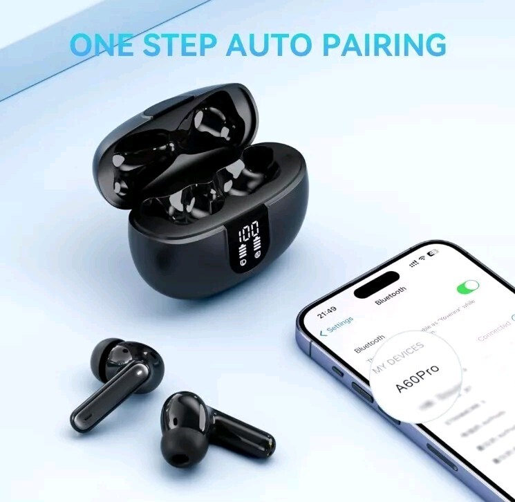 Sealed from factory. Experience high-quality wireless audio with these Bluetooth 5.3 headphones. With a playtime of up to 40 hours, you can enjoy your favorite tunes all day long. The deep bass stereo sound is perfect for music lovers who appreciate a good bass line. These earbuds are designed for comfort and come in a sleek black color. They are compatible with any Bluetooth-enabled device and have a built-in microphone for hands-free calling. With a unit quantity of 2, you can share your music with a friend. Get these A60Pro earbuds today and elevate your audio experience.