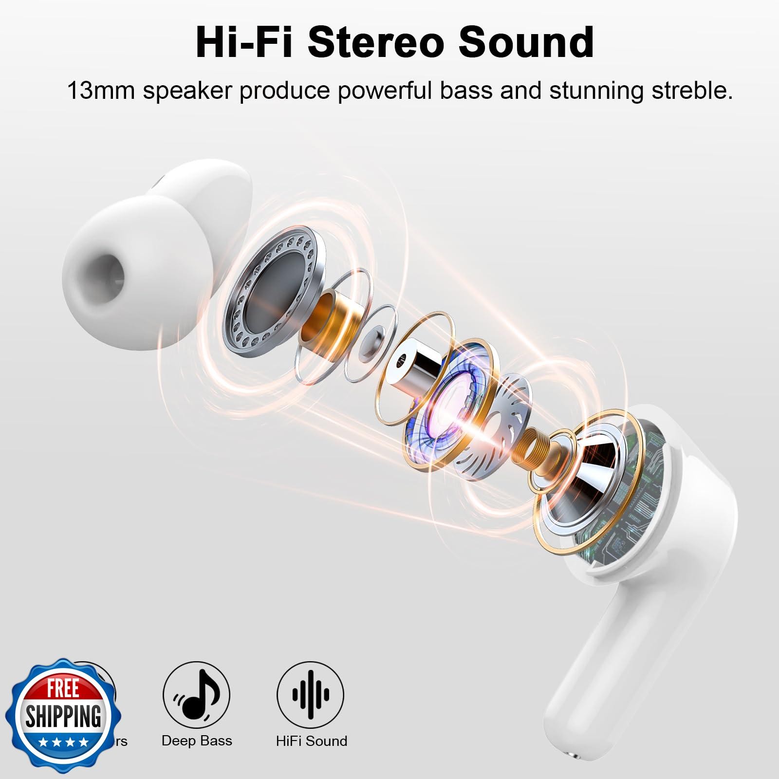 Wireless Earbuds, Bluetooth 5.4 Headphones Deep Bass Stereo, in-Ear Earphones with 4 ENC Mics, 45H Playtime LED Display Mini Charging Case Ear Buds, IP7 Waterproof Wireless Headphones for Android iOS Features Bluetooth 5.4 and Auto Connection: Our headphones wireless offer a fast and stable connection with Bluetooth version 5.4, providing you with a seamless listening experience. Pairing the earbuds with your device is effortless, and once they are successfully paired, they will automatically reconnect to the last connected device when you open the charging case. The running earbuds offer both binaural and mono modes, allowing flexible enjoyment with either the left or right earpiece alone. Immersive Stereo Sound and Superior Clear Call: Earbuds wireless bluetooth incorporate 13mm double-layer diaphragm drivers, delivering sound with strong bass, clear mids, and bright treble. ENC noise reducing wireless Earbuds have built-in 4 high-definition microphones that improve vocals by 75% and 50% more bass. It also ensures high resolution voice recognition and call quality even in noisy environments.Experience hassle free conversations, free from ambient distractions. 45H Playtime and LED Power Display: Each wireless earbuds offers a 6-8 hours of playtime per chargeand, and with the charging case, you're treated to a staggering 45 hours of uninterrupted music bliss. Separate LED bluetooth headphones battery display design, you can clearly see the charge level of each ear buds and charging case. Bluetooth earbuds come with a charging case and USB-C charging cable, it takes only 1.5 hours to fully charge the rechargeable case using the charging cable. Ergonomic Design and IP7 Waterproof: Wireless bluetooth earphones, ergonomically designed to be very light and easy to carry. (S/M/L) 3 different sizes of ear caps, designed for different ear shapes to ensure a comfortable fit. The internal components of the wireless ear buds are all coated with IP7 waterproof nano-coating, which can prevent sweat immersion and protect the in-ear earphones from damage. You can wear it when you are sweating during exercise or walking in the drizzle. Convenient Touch Control and Wide Compatibility: The noise cancelling earbuds support dual-ear touch control, providing convenient operation on the volume control, previous/next song, pause and answer calls along as well as voice assistant control. Whether you're exercising, driving, or running, your hands are completely free. The bluetooth 5.4 wireless earphones are compatible with almost Bluetooth-enabled devices such as iOS, Android cellphones, tablets, laptops, TV, etc. Shipping Free & Fast Shipping: We offer free shipping to most of the USA with a normal delivery time of 3-7 days. However, due to the current situation, additional delivery time (up to 3 weeks) may be required for some items. Alternative Carriers: We may use alternative carriers (e.g., USPS, FedEx, UPS) to ensure your package arrives safely and on time. Due to the use of multiple carriers, we are unable to provide a tracking number automatically. Handling Time: Orders are processed and shipped within 1-2 business days of receiving cleared payment. Shipping Restrictions: Shipping to Alaska, Hawaii, Puerto Rico, Guam, and other US territories may incur shipping charges or delivery restrictions. Please contact us before ordering, or your order can be refunded/cancelled. State Restrictions: Certain items may not be shipped to California due to state regulations. Contact for Tracking Updates: If you require tracking updates or have any concerns about the delivery of your order, please feel free to contact us, and we will be happy to assist you. Return Policy 30-Day Hassle-Free Returns: If you are not completely satisfied with your purchase, you can return the item for free within 30 days of receiving it for a full refund or exchange. Easy Return Process: Contact us, and we will provide you with a prepaid return shipping label and detailed instructions. No Restocking Fee: There are no restocking fees for returns. However, the buyer is responsible for return shipping costs if the return is not due to a seller"s error. Refund Processing: Refunds will be processed within 1 business day of receiving the returned item in its original condition. Feedback Your feedback is extremely important to us. We strive to provide the best products and customer service possible. If you are satisfied with your purchase, please take a moment to leave us a positive review. If you have any concerns or issues with your order, please contact us before leaving negative feedback. We are committed to resolving any problems and ensuring your satisfaction. Contact Us If you have any questions or concerns, please feel free to reach out to our customer support team. You can contact us through the eBay messaging system. We are available Monday to Friday, 9:00 am to 5:00 pm EST, and we will do our best to respond to your inquiry within 24 hours. Thank you for supporting our small family business!