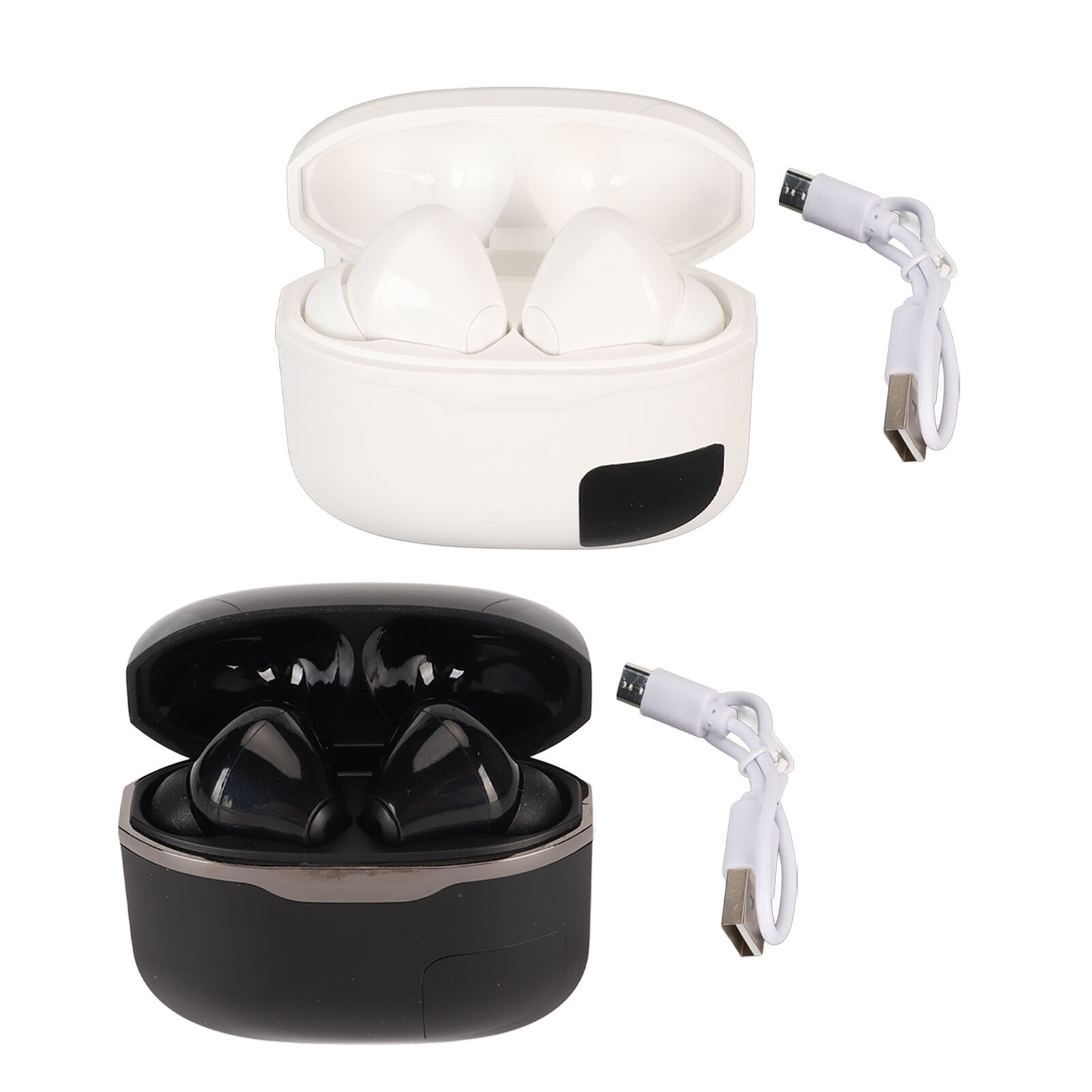Feature: 1. 13mm Diaphragm: Stereo earbuds have a high dynamic range and dynamic speakers with a high end 13mm diaphragm. Whether you're at the gym, watching a show or talking on the phone, your headphones deliver crystal clear sound. 2. Automatic Connectivity: Wireless earphones feature 5.0 with a 50% enhanced signal and less latency. The transmission range is 15m / 16.4yd. Open the lid of the charging case and the headset automatically connects to the previously paired device. 3. Comfortable: Wireless earphones look new and innovative, the new design of the headset support firm at the same time more mini and lightweight, suitable for all kinds of ears, comfortable to wear for a long time. 4. Long Lasting Battery Life: Sports earphone can be used normally for 5 hours after a full charge, with a charging case to enjoy 24 hours of total battery life, standby time of 130 hours. 5. LED Digital Display: Wireless earphonesled digital display, you can always check the charging compartment power, no need to worry about using the device system is for , for ios or for , as long as there is a function, you can fully compatible with the use. Specification: Item Type: Wireless Earbuds Material: ABS Transmission Distance: Approx. 15m / 16.4yd Standby Time: 130 Hours Talk Time: 5 Hours Music Time: 5h Charging Time: 1h Battery Capacity: 250mAh Lithium Battery for Charging Bin, 2 x 40mAh Lithium Battery for Headphones (Included) Speaker Size: Approx. 13mm / 0.5in Frequency Response Range: 20Hz-20KHz Product Size: Approx. 56.5x51.6x25mm / 2.2x2.0x1.0in Package List: 2 x Earbuds 1 x Charging Bin 1 x Charging Line Note: Manual measurement, please allow slight error.