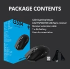 Logitech G304 Wireless Mouse Equipped with 6 programmable buttons stored in onboard memory, the lightweight and durable design and built-in nano receiver storage space make G304 an excellent travel companion.Notice:Due to international logistics restrictions. The battery needs to be removed. Test the product. The product you received does not come with a battery. Guarantee the product is original Logitech, thank you. Notice: Due to international logistics restrictions. Remove the battery. Test the product. The product you received has no battery and is in unwrapped condition. We guarantee that the product is Logitech original new product, thank you FAQ: 1、Q:Does the product match the serial number on the package? A:It is normal that S/N codes on Logitech products are not consistent with P/N codes and S/N codes and P/N codes on packages because products and packages need to be managed, controlled and traced respectively. 2、Q:Why does the mouse foot patch have scratches or warps? A:The mouse will do cross calibration before the factory setting, and test whether it meets the quality standard, so the foot patch will inevitably have scratches, hot weather leads to the foot pad glue melting after the foot pad up, just gently press can be used normally, belongs to the normal situation.