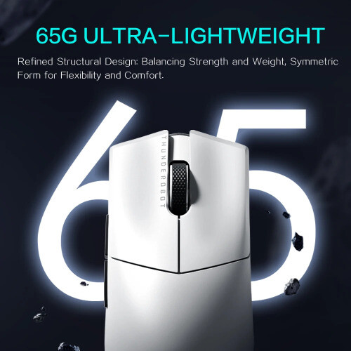 SPECIFICATIONS : 1. Sensor: PAW3395, 650IPS, 26000DPI 2. Switch: Kailh GM8.0, 80M 3. Lighting: NO 4. Form Factor: Symmetrical Form 5. Connectivity: wired, 2.4G wireless, bluetooth 6. Battery: 300mAh 7. Number of buttons: 6, 5 programmable 8. Weight: 65g 9. 4K editon with wireless charging station, wireless FPS support up to 4Khz About the Tax(To Global buyers) * Price does not include any tax, it depends on the local customs. * Please kindly understand if package returned from oversea due to the buyer's reasons. We will be charged with high expenses, so we can not make any refund for your order. BLAZING FAST & LAG-FREE Thunderspeed Wireless Tech Powered by Thunderspeed Wireless Transmission Tech, coupled with performance-tuned data pipeline and Nordic's high-refresh, low-power MCU, delivering minimal latency and a highly stable connection experience. Make the transmission at lightning speed. UNRIVALLED SPEED AND PRECISION Pixart PAW3395 Precise Optical Sensor Advanced Max 26000 DPI optical sensor, 650 IPS, 50g acceleration and 1000Hz polling rate , enjoy responsive, pixel-precise aim with an ultra-reliable sensor that tracks your movement with zero spinouts. UNLEASH AGILITY DEFY GRAVITY 65g Ultra-Lightweight Symmetrical Form Factor Refined Structural Design: Balancing Strength and Weight, Symmetric Form for Flexibility and Comfort. SEAMLESS CONNECTION. LIMITLESS POSSIBILITIES. 3 Mode Of Connectivity -- Wired USB | 2.4GHz | Bluetooth Wireless Mode: Connect Two Devices Independently via Bluetooth/2.4G. EMPOWER. UNLEASHED. Thunderobot Mouse Wireless Charging Dock 4K ML903 supports both wireless charging and wired charging. Simply place ML903 on the wireless charging dock and align the magnetic slot for charging to begin. ULIMATE 4KHZ POLLING RATE Thunderobot Mouse Wireless Charging Dock 4K integrated with high-refresh MCU + 2.4G Dongle, elevate mouse polling rate to native 4KHz, unleash your unlimited. 2.4GHz Dual-Dongle Switching Capability In 2.4GHz mode, insert the two dongles into separate USB ports of different PCs and use a combination button to switch between connected devices in real time. BETTER POWER EFFICIENCY Powered by Thunderspeed Wireless Tech, optimized power consumption. With a high-capacity 300mAh lithium battery, achieve over 70 hours of battery life. DEEP OPTIMIZATION FLAWLESS PERFORMANCE Incorporating Superior Keystroke Preload Mechanism. Through in-depth optimization and tuning of the mouse structure, enjoy an enhanced keystroke preloading system that eliminates key travel, provides crisp tactile feedback, and enables rapid rebound. Embrace the exhilaration of every kill with precision and speed. OTHER TOP-TIER FEATURES