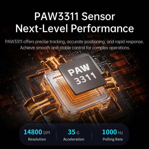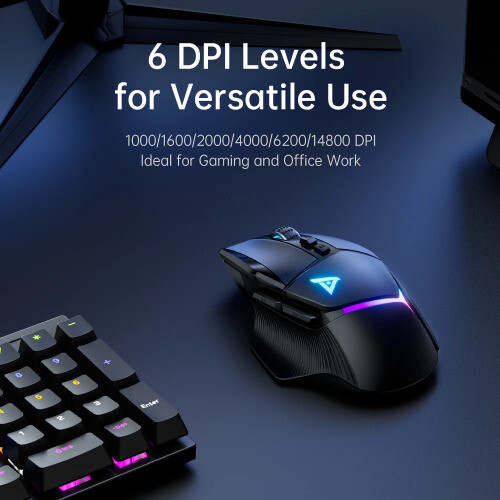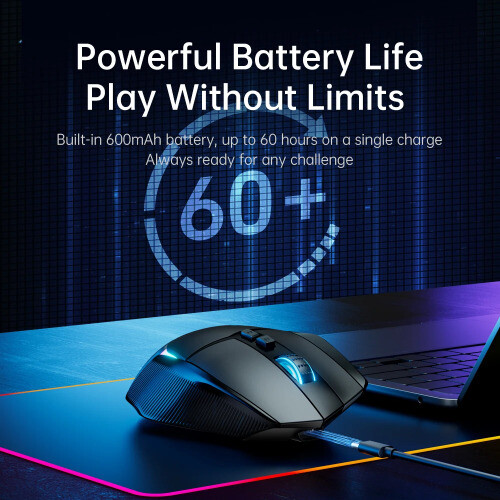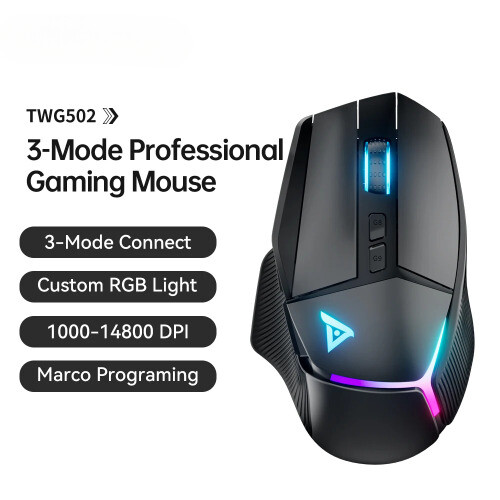 Description 【Versatile 3-Mode Connectivity】 Effortlessly switch between 2.4G wireless , Bluetooth 5.0 , and USB-C wired modes. Whether you're gaming or working, the TWG502 ensures reliable and seamless connectivity for every scenario. 【Ergonomic Design for Long-lasting Comfort】 The curved shape of the TWG502 fits naturally in your hand. The anti-slip texture provides a secure grip, reducing fatigue even during extended gaming or work sessions. 【Precision PAW3311 Sensor for Accurate Control】 Equipped with the PAW3311 sensor , it delivers precise tracking and fast response times. The 6 adjustable DPI levels (1000/1600/2000/4000/6200/14800 DPI) make it versatile for both gaming and office tasks. 【Custom Macro Programming for Personalization】 Tailor your commands with custom macro programming for more efficient gameplay and productivity, making the TWG502 suitable for both gamers and professionals. 【1000Hz Polling Rate for Lag-Free Performance】 With a 1000Hz polling rate , the TWG502 provides smooth, responsive control without any lag, perfect for competitive games like PUBG, CS, and League of Legends. 【RGB Lighting for a Premium Gaming Atmosphere】 The 7 RGB lighting modes and 16.8 million color effects add a premium look to your gaming setup, creating a vibrant atmosphere that enhances your gaming experience. 【Long-Lasting Battery Life】 The built-in 600 mAh battery provides up to 60 hours of gameplay on a single charge, allowing you to play uninterrupted, with or without the RGB lights turned on. 【 Lightweight and Portable Design 】 Weighing just 72g , the TWG502 is designed for fast movements and precise control, making it ideal for gamers who need speed and accuracy.