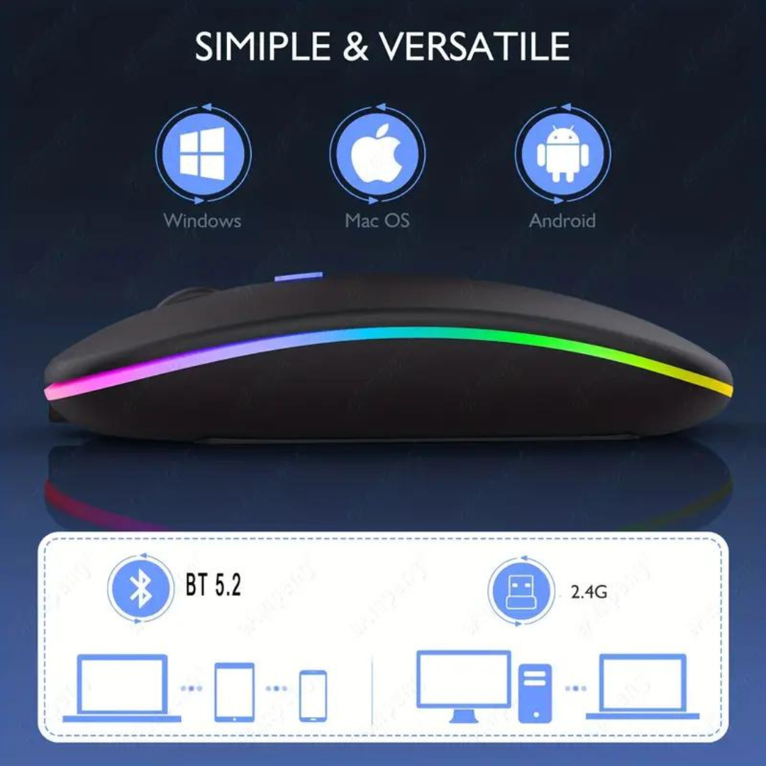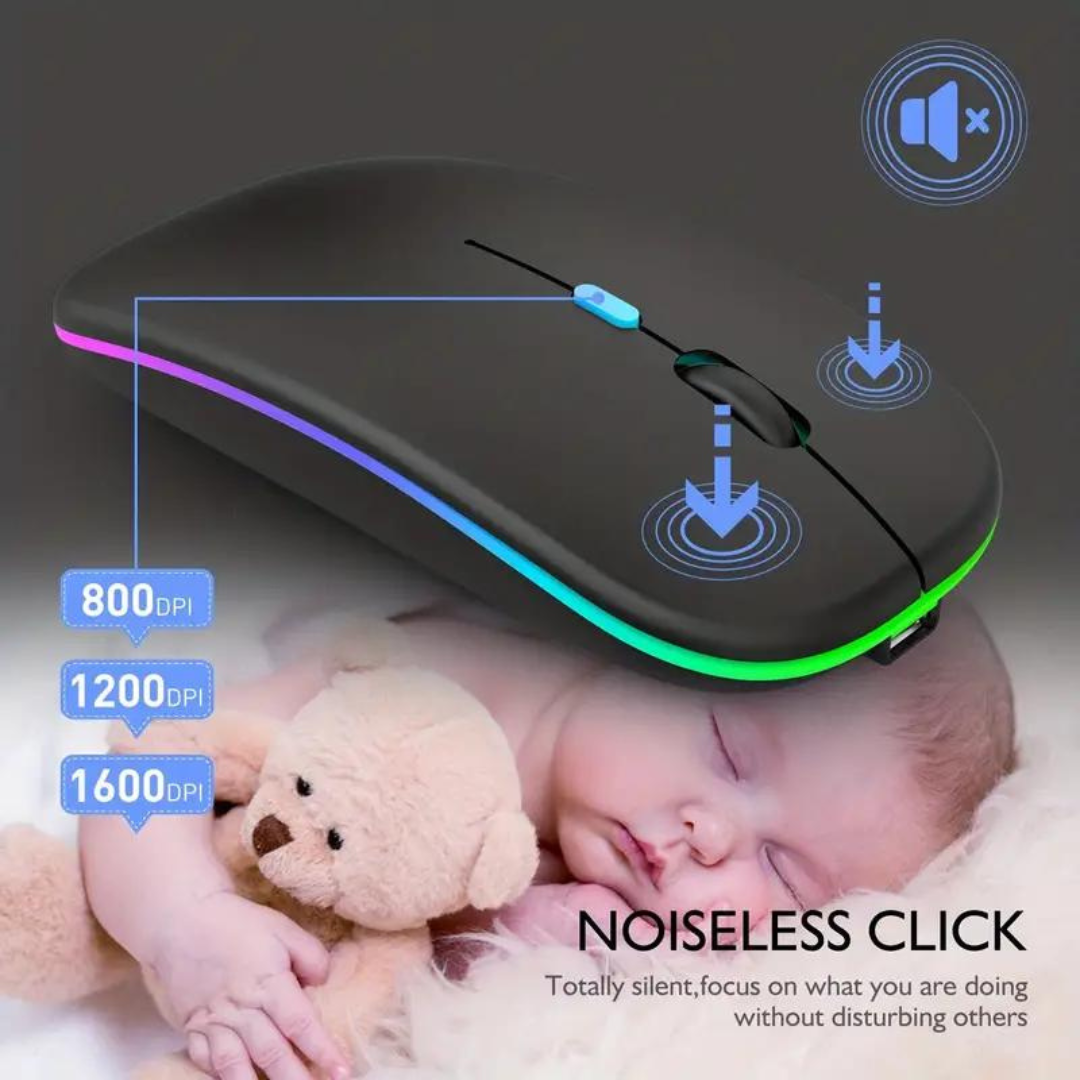 Silent rechargeable wireless mouse with light, compatible for use on tablets. • Silent technology design of less than 35 decibels of sound • 4-hour rechargeable battery • Soft high-quality multi-color LED • Rechargeable technology through a USB port More info at: edhillsupply.com