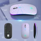 【Rechargeable Wireless Mouse】 Built-in durable rechargeable battery, it can be easily charged using the included USB cable without replacing the battery. 【Power Saving Mouse & 7 Colorful Light】 With energy saving function, cordless mouse will enter sleep mode after 5 minutes of inactivity. Just click and the mouse will enter working mode again; 7 Colorful Breathing Light Effect, can not set in one specific color, you can choose to turn it on or off. 【Silent Cordless Mouse】 Silent click Mouse with anti-fingerprint finish offers, Silent button reduces 90% noises, which makes it an ideal wireless mouse for office, conference room, help you concentrate on your work. 【3 DPI Switch Computer Mice】 Is more accurate than traditional USB mouse, working distance up to 10 meters, no need to install software can be used as a gaming mouse. 3 DPI switches (1000, 1200, 1600) freely change the mouse speed for all kinds of games. 【Universa Compatibility】with USB and type C receiver wireless mouse works with computer, laptop, desktop with USB, type-c port, plug and play.