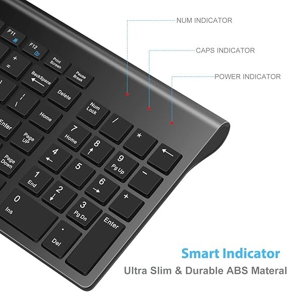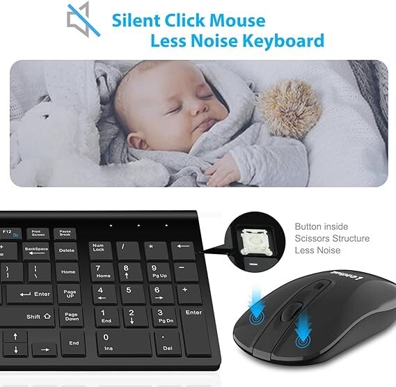 About this item Less Noise: The wireless USB keyboard adopts scissors structure button, reducing 90% of the clicking noise. Silent click wireless mouse will allow you to do your job without disturbing others. Compact Size: The wireless keyboard is in compact size design with number pad, saving the space on your desk.The mouse is ambidextrous to fit in both left and right hands. Easy to Use: LeadsaiL wireless keyboard features 12 multimedia shortcuts allowing instant access to play, pause, previous, next, volume, mute and more. (Note: this function is not compatible with Mac OS). Energy Saving: The wireless keyboard and mouse combo will go into sleeping mode to save battery consumption while it’s not in use for 3mins. Click or press any key or button to wake them up. (1*AA battery for the mouse and 2*AA batteries for the keyboard, Battery not included in the package) Plug and Play: The wireless mouse and keyboard set shares a 2-in-1 USB receiver that is placed inside the mouse next to the battery compartment. The 2.4G wireless connection can be up to 10 meters(33 ft) away. Product Dimensions 14.57 x 5.51 x 0.79 inches Item Weight 1.28 pounds ASIN B082VS96NC Item model number LX-004-BLACK Batteries 3 A batteries required. Customer Reviews 4.2 4.2 out of 5 stars 4,947 ratings 4.2 out of 5 stars Best Sellers Rank #31 in Computer Keyboard & Mouse Combos Date First Available March 17, 2020 Manufacturer LeadsaiL Country of Origin China
