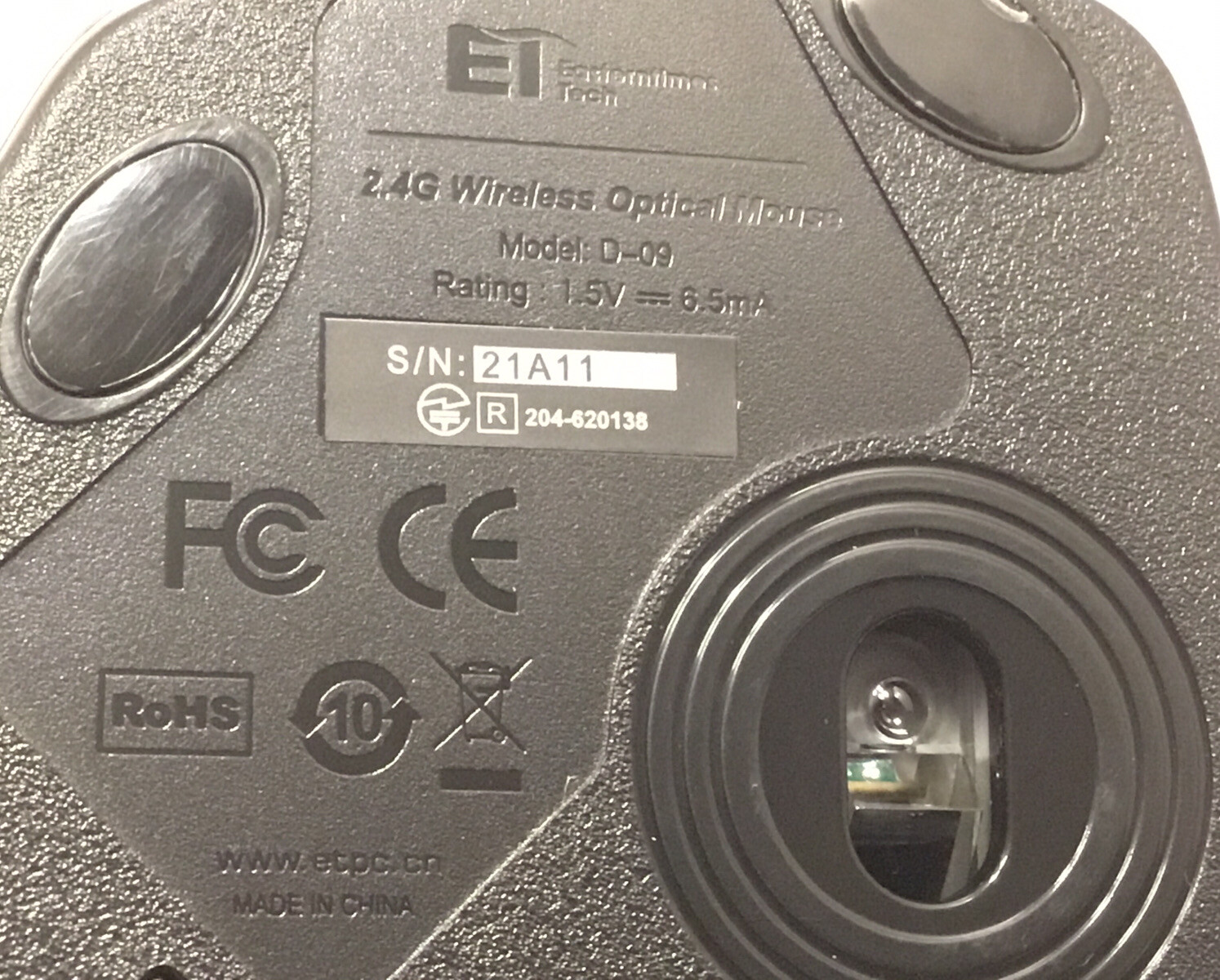 Country/Region of Manufacture:ChinaTracking Method:OpticalType:wireless mouseNumber of Buttons:3Color:BlackBrand:Eastern Times TechnologyFeatures:Ergonomic, Scroll WheelModel:D-09Connectivity:Wireless, USBMPN:Ca57bn