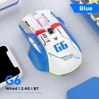 • 4000 DPI Resolution : Enjoy precise and accurate cursor movements with a high resolution of 4000 DPI. • RGB Backlit Design : The mouse features a stylish RGB backlit design that adds a touch of elegance to your gaming setup. • Rechargeable Battery : No need to constantly replace batteries, the mouse is rechargeable and can last for hours of gaming fun. • Both Hands Orientation : Designed for both left and right-handed users, the mouse is comfortable for everyone to use. Tri modes gaming mice: The gaming mice with unique color matching provides three connection modes of wired/wireless/Bluetooth, and each connection provides reliable and accurate transmission. Three colors are available, bring a different visual experience to your life , inspired by transformers, which gives you a more immersive feel when using the mouse. Notice: 1 Please charge the product before use 2 Do not use fast charging chargers to charge the product 3. Please do not disassemble the product without permission.