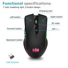 Gaming Mouse 7 Color LED Backlight Wireless USB Rechargeable Optical Mice For PC Gaming Mouse 7 Color LED Backlight Wireless USB Rechargeable Optical Mice For PC 100% brand new and hig-quality made. Features 2.4g wireless transmission technology to provide reliable, precise, and long-range connection, up to 30ft / 10m working distance, eliminating delays, dropouts, and interference. Equipped with 3 DPI levels, available from 800-1200-1600 DPI, simply control the mouse moving speed by just pressing the DPI button. 7 LED RGB color change randomly, colorful and dazzling, creating an excellent gaming atmosphere. The mouse will enter sleep if you keep it for 8 minutes inactive. Built-in rechargeable battery, simply plug and play. Package Includes: 1x Wireless Mouse 1x Dongle 1x Charging Cable Shipping Policy Returns Contact Us All orders will be processed and shipped within 12 hours, Monday to Friday in most cases. Most packages will be shipped via USPS First Mail, it usually takes 3-5 days for delivery. A tracking number will be emailed to you upon shipment. Please note that USPS does not update tracking information location by location. We only ship to address that you input during Paypal checkout. Buyers are responsible for wrong or undeliverable address. Returns will be accepted within 30 days after delivery. However, if the item is damaged upon arrival, buyers must contact us within 3 days after delivery for any refund or replacement. Returns will not be accepted if buyers caused any damages to the item. Refunds are given as Exchange or Money Back. Please be patient when contacting us, all messages will be replied within 12 hours. Please let us know immediately if a package is damaged upon arrival. Feel free to contact us if you’d like to combine shipping on your purchases. We appreciate your feedback and we will send buyers positive feedback after a shipment has been processed. Customer satisfaction is significant to us. If you are dissatisfied with a transaction for any reason. Before taking any action, please contact us through eBay and we will do everything we can to help you. Listing and template services provided by inkFrog