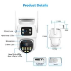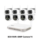 8CH 8MP Dual Lens PTZ WIFI Security Camera Mini Wifi NVR H.265 Waterproof Wireless CCTV Surveillance System Ultra-wide WIFI Coverage Easy and Fast Connection 24/7 Recording and Playback 8MP camera, which means single lens is 4MP , so dual lens is 4MP+4MP= 8MP Dual lens and Dual Screen Live View Two Way Audio Talk Back Built-in high quality microphone and speaker, you will not miss any important audio record around . AI Humanoid Motion Detection Multiple Night Vision Modes Built -in White LED and IR LED,support Full color night mode / Infrared night mode / double-light alert mode . Pan Tilt Rotation Horizon: 0 To 355 Degree ; Vertical: 0 To 90 Degree IP66 Waterproof