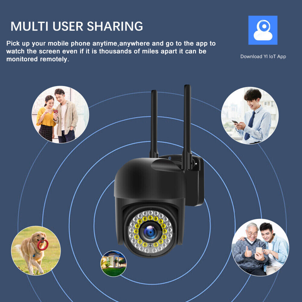 Security Camera Wireless WiFi Surveillance Outdoor Home Cam Color Night Vision Wireless Outdoor Security Camera, HD 1080P Waterproof Surveillance Camera with Motion Detection PTZ Speed Dome Night Vision 2-Way Audio,Support Dual Band 5GHz & 2.4GHz WiFi Product Remarks: Product Name: Wireless WIFI IP Camera Outdoor Product Size : 11.5*8.5cm/4.52*3.34inch Feature: 1. 2.4G/5G Dual-band WiFi Connection: Support 5GHz and 2.4GHz, faster response, convenient for your life. 1080P Dome Camera. 2.Smart Motion Detection: Camera will send notification to phone app when motion is detected. Remotely check your home status and never miss any details no matter where you are. 3. Three Night Vision Models: Equipped with 36pcs LED (15 pcs white LED & 21 pcs Infrared LED), the IP camera allows IR Night Vision, Full-color Night Vision, Sound And Light Alarm Night Vision. (1)Infrared Night Vision: the infrared light is turned on, the picture is black and white, suitable for normal monitoring (2) Full-color Night Vision: switch to "full-color mode", the white light of the camera works, and the monitoring screen is a color screen, which can deter thieves (3) Smart Night Vision: when switching to "Smart Night Vision" mode, the camera defaults to "Infrared Night Vision". When someone triggers the camera's motion detection function, the white light is turned on and the infrared light is turned off, and it will immediately switch to "Full Color Night Vision" 4. Clear and Delay-free Two-way Audio: Built-in microphone and speaker enable you to have two-way intercom with people who are near to the IP camera by your smartphone. 5. PTZ Control: Supports 355°horizontal and 90°vertical rotation. Leaves no blind spots. 6. IP66 Waterproof & Temperature-resistant: The IP camera works perfectly in various harsh environment, such as storms, snow, sleet, frost and severe heat. 7. Multi-user Viewing: Multiple users can view real-time videos simultaneously. 8. Cloud Storage & TF Card: It offers cloud storage service (Need pay at app) that allows you to playback videos (history) via app anytime and anywhere, download and save them. It also supports up to 128GB TF card (Not included) 9. Small Size: With compact size (11.5*8.5cm/4.52*3.34inch), the mini ballhead camera is unnoticeable in the outdoors, which makes it convenient to record suspicious activity. 10. Wide range of applications, suitable for companies, shopping malls, supermarkets, and family scenes. Product Technical Parameters: App Software: Yi Iot Color: Black, White (Optional) Pixel: 1080p Lens: 3.6mm Connection Mode: Wireless Connection, AP Hotspot Connection, and Video Recording Without Network. Wireless Connection: 802.11a/B/N/G Transmission Protocol. Antenna Mode: External Antenna, 5db Antenna, 2 Antennas. Wired Connection: Internet(Tcp/Ipv4) Protocol. Angle of Platform: 355° Horizontal and 90° Vertical. Video Output: 1920*1080 Mobile Tracking: Support Day and Night Switching: Built-in Ir-cut Double Filter Infrared Night Vision: Support Video Storage: Tf Card, Cloud Storage Tf Compatibility: Support 8-128gb Tf Card. (TF Card is not included) Video Recording Methods: Timed Video Recording, Time Video Recording and Alarm Video Recording. Alarm Mode: App Push, Machine Horn Alarm. Motion Detection: Support Body Material: Abs Visible Distance in Daytime: 0-30m. White Light Distance: 5-8m Infrared Distance: 5-10m Occupied Space: 4g/ Day (Depending on Storage Efficiency and Environment) Language Support: Support Multiple National Languages. Mobile Phone Monitoring: Support Mobile Phone Monitoring (Ios, Android). Power Supply: Dc 5V1A Power Consumption: less than 2w (Excluding Infrared Lamp, Tripod Head and Loudspeaker) Temperature:-10℃-+55℃ Humidity: 10%-80% Compatibility: Support Cloud Storage for 7*24 Hours. Easy to Set-up: 1. Power on the camera; 2. Download YI loT APP from APP Store or Google Play; 3. Connect the phone to 5G/2.4Ghz Wi-Fi and scan the QR code using the YI loT app to add the camera into your account. Warm Tips: Ensure that it is connected to a normal adapter; Ensure that the latest version of the app is installed; Ensure that the connection is 5ghz or 2.4ghz wifi. Product list: 1 x Camera 1 x Installation Package 1 x Charging Cable Note: 1. Due to manual measurement, please allow 1-3cm error. Make sure you don't mind before bidding. 2. Due to the difference of different monitors, the picture may not reflect the actual color of the product. Thanks. Payment Delivery details Terms of sales About us Contact us Payment 1.We only accept PayPal as payment method. 2.The item will be shipped to buyer’s CORRECT and VERIFIED Ebay Address. 3.We are not responsible for the package lost due to incorrect address. 4.Our price do not including any custom or duty, VAT and local tax. 5.Payment must be received within 7 days of winning the auction 6.Please contact us if you need file an extension for any late payment. Delivery details 1.All item are shipped via DHL eCommerce or USPS Frist Class express Service within 2 business days once full payment is settled.If you can't get your items in time,please contact to us first,we will check and solve it for you soon.We will reply your mail within 24 hours normally. Sometimes have a little delay due to the weekend or holiday.If you can't get our mail after 48 hours,please check your spam or contact to us with other mail address or via ebay. 2.We only ship to confirmed Ebay addresses. Your Ebay address MUST MATCH your Shipping address. 3.If you want to change the address please E-mail us right after you pay for the item. 4.SERVICE TRANSIT TIME is provided by the carrier and excludes weekends and holidays. Transit times may vary, particularly during the holiday season. 5.If you have not received your shipment within 30 days from payment, please contact us. We will track the shipment and get back to you as soon as possible with a reply. Our goal is customer satisfaction! Terms of sales 1.Please contact us via eBay Message