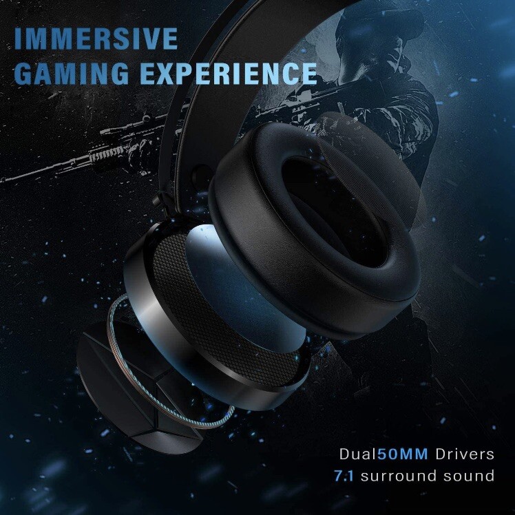 Product description: 【7. 1 Surround Sound System Immersive Gaming Experience】 Equipped with high precision 50mm magnetic neodymium driver, you can hear the subtle sound like footsteps wind Best gaming headset for your budget, hear your enemies before seeing them! Perfect partner for various games like FPS RPG MOBA Racing game etc. 【Noise Cancelling Headphones 360° Rotation】 Omnidirectional noise reduction PS4 headset will help pick up your voice more clearly in chats with teammates thus enhance the communication for better gaming experience. The crystal clear mic can be adjusted to 360° for easy assembly and fixing. Mute Switch & Volume Control. 【Multi-platform Compatibility】 This 3. 5mm gaming headset is compatible with PS4, PS4 Pro/Slim, Xbox One, Xbox One S/X, PC Nintendo Switch/3DS PSP PS3, Laptop, Computer, Tablet, iPad, Mobile Phone. Note: For xbox one controller 1537, a headset adapter for xbox one controller will be required to use this headset. 【Ergonomically Comfy Wearing High Premium Material】 No more worry for sweating dirt or stuffy, you'll enjoy the ultra-soft and breathable bionic protein earmuffs for long-time gaming. Xbox One headset employs elastic headband design for different head sizes. Irregular fascinating LED lights highlight the game atmosphere. 【100% QUALITY & 24 MONTHS 】 All your rights and needs would be in highly priority. Considering of the high quality of gaming headphones, we dare to offer our customers 24-month . For any problems, we promised to provide professional troubleshooting in 24 hours. Specifications Headset Driver: 50mm Sensitivity(1KHz): 116±3dB Rated Power: 15mW Cable Length: 7.22Feet / 2.2 meter LED working voltage: DC5V Dynamic Impedance: 24Ω±15% Microphone Microphone sensitivity: -42±3dB Unit Dimension: 6mmx2.7mm(H) Maximum Power: 100~10000Hz SNR: 60dB or More Pick-up Pattern: omnidirectional Headset Jack: USB 3.5mm 4Pin