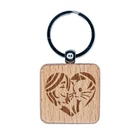 Woman with Cat Kitten Pet in Heart Engraved Wood Square Keychain Tag Charm