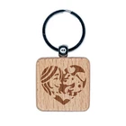 Woman with Dog Puppy Pet in Heart Engraved Wood Square Keychain Tag Charm