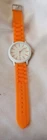 This vintage women's wristwatch features a white dial with arrow markers and a 12-hour analog display. The watch has a silver stainless steel case with a silver plastic band. It is not water-resistant and does not come with papers or original packaging and will need a new battery. The watch is powered by a quartz movement and has an unknown number of jewels. The bezel color is silver, and the watch has a round shape with a 30 mm case size. It is a casual-style watch that would be perfect for everyday wear.