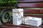 Stack of 3 Faux Books for Decoration "Blessed" printed on top book face, while books' spine has warm inspirational quote "I still remember the days I prayed for what I have now" Features ✔Silkprinting on sturdy solid wood, never to fade off ✔Unique design -- printing on both book top face and book spine ✔Exquisite beaded twine adds more elegant farmhouse touch ✔Great surprising gift to a new homeowner, friends, family members by adding a gift wrap and a personalized message! ✔Ideal for modern home decor, display project, interior design, sketch book or art journal. Specifications SIZE: 7.5L x 5Wx 3H Inches/ 19L x 13W x 7.5H CM ( including twine & beads ). WEIGHT: 1.2lbs / 0.53kg Package Included 1 x Wooden Decorative Book Stack 【HANDCRAFTED WOOD BOOK STACK】This farmhouse stacked books decor consists of 3 books made of solid cedarwood. White painted with rustic distressing finish. "Blessed" printed on top book face, while books' spine has warm inspirational quote "I still remember the days I prayed for what I have now". 3 farmhouse wood books glued together, won't move to get loose, bookstack bound with rustic twine,the hemp rope's ends are threaded with white wood beads. 【IDEAL FOR HOME DECOR】This farmhouse inspired book stack is perfect for adding a cosy feel and bringing rustic and literary charm to your home. This farmhouse decor will look beautiful on a bookshelf, coffee table, mantle, tray, night stands, fireplace, entryways etc. Also ideal for modern home decor, display project, interior design, sketch book or art journal. 【UNIQUE GIFT IDEA】The decorative white book is a unique gift to match modern farmhouse or country themed decorations. Great surprising gift to a new homeowner, friends, family members by adding a gift wrap and a personalized message! It is simple but so warm, perfect as Chanukah, Christmas, Thanksgiving, wedding, anniversaries, birthday or housewarming gift. 【MATERIAL,SIZE】Made of solid cedarwood, good quality. Size is 7.5 L x 5 Wx 3 H inches(including twine & beads). 【WARM CUSTOMER SERVICE】We focus on natural style home decoration, hope our product bring warm and comfort to you. Please ensure its size can meet your demands before ordering!