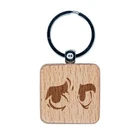 Worried Cartoon Eyes Looking to the Side Engraved Wood Square Keychain Tag Charm