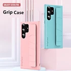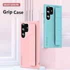 New Litchi Leather Pattern Gripcase Grip Case Strap For Samsung Galaxy S23 Ultra S22 Wristband Band Anti-Fingerprint Armor Cover