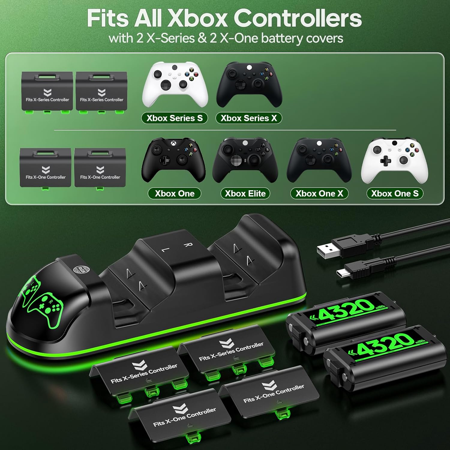 Fast Shipping On All Items Money Back Guarantee Customer Support Excellent Service 100% Satisfaction Satisfaction Guaranteed Controller Charging Station XBOX XS/X with 2 Rechargeable Batteries and Covers Specification Total Usb Ports 1 Number of Items 2 Power Source USB Powered Model Number IV-X131 Unit Count 1.0 Count Main Power Connector Type 2 Pin Number of Power Levels 1 Material Plastic Connector Type Used on Cable Barrel Connector Input Voltage 5 Volts Additional Features Rechargeable Battery, LED Indicator Output Current 3 Amps Connector Type Barrel Connector Total USB 20 Ports 1 Item Weight 249 Grams Connectivity Technology wired Power Plug Type A - 2 pin (North American) Special Feature Rechargeable Battery, LED Indicator Mount Type Tabletop Mount Amperage 3 Amps Portable No Mounting Type Tabletop Mount Color black Wattage 1300 watts Compatible Devices Game Consoles Output Voltage 5 Volts Built-In Media charging station Included Components charging station . Weight: 249.0 grams Item Description Please Note: This batteries and battery covers are ONLY compatible with original Xbox Series X|S & Xbox One X|S / Xbox One/ Elite controllers. They are NOT compatible with Xbox 360 controllers, and any third-party Xbox controllers. Rechargeable Battery Pack for Xbox Series X/S &Xbox One X / S / Xbox One/ Elite:Specially xbox controller charger with two xbox battery pack rechargeable to refuel dual Xbox controllers in less than 2 1/2 hours simultaneously. It's a great xbox play and charge kit for all Xbox controllers & gamer. Rechargeable & Large-capasity Battery Packs:Package including a controller charger station and rechargeable batteries for all Xbox remotes.The rechargeable battery pack for Xbox One is a perfect replacement kit for you.And the rechargeable xbox one controller battery pack can be charged separately,only takes 2.5 hours to charge 2 series x rechargeable battery. Long Battery life:Say goodbye to AA batteries, cycle charges over 3000 times;OIVO controller charging station dock for Xbox one with both rechargeable battery just takes 2.5 hours to charge fully but provide up to 20 hours of playtime.The controller charger for xbox series x lasts a long time ensuring you will not have to constantly swap out battery packs mid gaming session High-Speed Charger for Xbox & Clear LED Indicators:Our controller charger station with rechargeable battery pack for xbox series x features 2 LED charging indicator showing charge status:red light is charging, green light is fully charged/standby.The dual controller charging stand for Xbox series s/x provides you a convenient and comfortable way to store and charge your Xbox controllers. Advanced Safety Features for Xbox rechargeable battery charger:The charging station dock with 2 rechargeable batteries featuring overcharging, overheating, overvoltage and short circuit protection,the controller charger station with battery pack rechargeable for xbox keeps you and your devices safe,you don’t have to worry about damaging the controller, even if you forget to remove the battery in time Product Description About us We offer the best prices around on high quality products. Our E-store includes media such as books, movies, music and games while offering electronics, toys, sporting apparel, clothing, tools, general home, garden items and more. Shipping We are always working hard to ensure your package arrives as soon as possible. Please understand that some factors like weather, high postal traffic, and the performance of shipping companies are outside of our control. We offer free shipping to the lower 48 states and ship within 2-3 business days of payment, usually sooner. We do not accept P.O. Boxes. Please provide a physical address. For shipping outside of the continental USA, we only use eBay's Global Shipping Program.The item is shipped to KY and then sent to the rest of the world. International customers are responsible for all duties and taxes. Continue to check out to calculate costs for shipping the item to your country. Messages regarding eBay's Global Shipping Program MUST be directed at eBay EXCLUSIVELY. Returns We offer a 14-30-Day Return Policy on select items in which you are not completely satisfied with. You have the option of a full-refund or an exchange of the item. No returns are available on items shipped outside of the USA We offer a 30-Day Return Policy on items in which you are not completely satisfied with. You have the option of a full-refund or an exchange of the item. No returns are available on items shipped outside of the USA We are always working hard to ensure your package arrives as soon as possible. Please understand that some factors like weather, high postal traffic, and the performance of shipping companies are outside of our control. We offer free shipping to the lower 48 states and ship within 2-3 business days of payment, usually sooner. We do not accept P.O. Boxes. Please provide a physical address. For shipping outside of the continental USA, we only use eBay's Global Shipping Program.The item is shipped to KY and then sent to the rest of the world. International customers are responsible for all duties and taxes. Continue to check out to calculate costs for shipping the item to your country. Messages regarding eBay's Global Shipping Program MUST be directed at eBay EXCLUSIVELY. We offer a 30-Day Return Policy on items in which you are not completely satisfied with. You have the option of a full-refund or an exchange of the item. No returns are available on items shipped outside of the USA We try over very best to make sure every customer is completely satisfied. If there's a problem, message us! We're happy to help. Payment Options Shop With Confidence