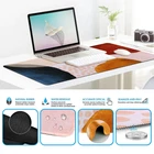 Large Mouse Pad Size: Extended mouse pad:35.4" x 15.7",wrist rest for computer keyboard:17.32" x 3.15" x 0.98",wrist rest for mouse:8.66" x 9.84" x 0.86",Coaster:3.93" x 3.93" Ergonomic Design: Ergonomic mouse pad with wrist rest fits the wrist perfectly, the keyboard wrist rest and mouse wrist rest can provide a good touch and effective support for your wrist, keep your wrist and hand relaxed Ultra-smooth Surface or Non-slip Base: With Comfortable Lycra Surface and Breathable Material to the desk pad. Making your mice glide on its surface effortlessly, which can provide optimum speed and accurate control during your working or gaming Water-resistant or Washable Surface: Long mouse pads for desk with a spill-proof coating makes liquids slide right off the surface. Effectively prevent damage from spilled drinks or other accidents. You can easily clean any dirt with a damp cloth Widely Usage: This combo can be used in many ways. The desk mats on top of desks can be used as a great desk organizer making your desktop neat. As a keyboard and mouse pad for you to gaming and work. As a home and office decor with a beautiful pattern