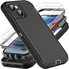 YKHJKLEC for iPhone 13 Case/iPhone 14 Case| Military Grade 3 in 1 Heavy Duty Shockproof/Drop Proof/Dust Proof Case with 2Pcs Tempered Glass Screen Protector (Black/Grey)