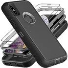 YKHJKLEC for iPhone X Case/iPhone Xs Case| Military Grade 3 in 1 Heavy Duty Shockproof/Drop Proof/Dust Proof Case with 2Pcs Tempered Glass Screen Protector (Black/Grey)