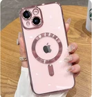 ZinLyuen Magnetic Case for iPhone 15 Case Clear Compatible with MagSafe Built-in Camera Lens Protector Soft Slim Shockproof Phone Case Cover for iPhone 15 6.1" - Pink