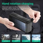 【Solar Panel Perfect for Outdoor Enthusiasts】:63200mAh solar power bank super large capacity.Let you get rid of the anxiety about battery electricity anytime,anywhere. Built-in 4 LED flashlights with 3 modes (lighting/ flashing/ SOS), which can be used as camping lamp, emergency lamp and rescue signal lamp. Equipped with solar panel, just hang it on your backpack to get recharge via sunlight. It's perfect for outdoor activities, like camping, hiking and other emergencies. 【Universal Compatibility & Security】: Built-in 63200mAh rechargeable Li-polymer battery, the solar power bank can charge your devices (like cellphone, camera, MP3, MP4, PSP) under the stable power supply. It can automatically adjust the output to deliver the most suitable current, keep your devices from overcharging, over-current, over-voltage and short circuit. 【Hand Crank & Solar Charging 2-in-1 Solar Power Bank】: With dual input ports (high speed Type-C and Micro ), the solar power bank can be fully charged by 9-12 hours. The mobile power supply adopts a hand-crank charging design. no sunlight, artificial power generation can be used to play an emergency role. (Kindly Note: Hand Crank & Solar charging is for emergency use, do not take solar power as a primary charging source. It is highly recommend you fully charge via wall charger on first use) 【Fast Charging Portable Charger】: The solar power bank uses strong professional ABS material, chemical resistant, heat resistant, excellent surface hardness, high elasticity and toughness. waterproof, dropproof and dustproof, so you no longer have to worry about water/drop damage, it can work in extreme environments. With more than 1600 charge life cycles, it is very reliable and durable. 【Intimate 24-hour after-sales service】: 1X 63200mAh phone charger power bank, 1X User manual, and lifetime friendly customer service. After purchasing our products, if you have any questions, please feel free to contact us, and we will definitely provide you with the most satisfactory solution.