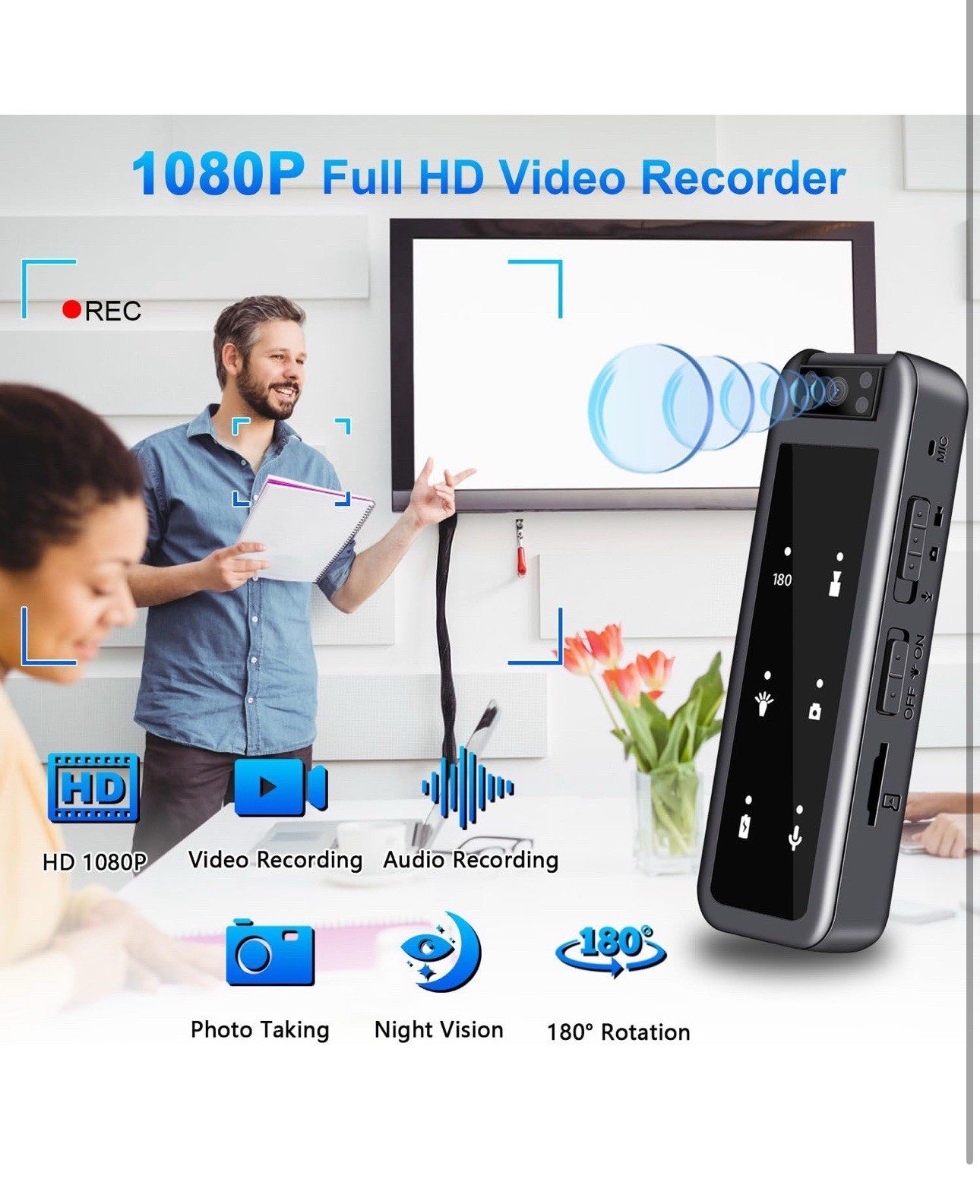 1080P Mini Video Camera,128GB Mini Video Camera with Audio & Video Recording, IR Night Vision, 5-Hour Battery & 180° Rotating Lens – Small Wearable Cam for Security, Police, and Outdoor Use