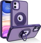 for Magnetic iPhone 11 Phone Case & iPhone XR Case Compatible with Magsafe| Ring Holder Kickstand Matte Design Shockproof Protective Bumper Girl Women Boy Men iPhone 11/XR Magnet Cover|Purple