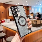 for Samsung Galaxy S24 Phone Case,Compatible with Magsafe,Magnetic Plating Glitter Gradient Cute Heart Clear Case,Camera Protection Case for Samsung Galaxy S24 6.1 Inch -Silver Compatible with:Specially designed ONLY for Samsung Galaxy S24 6.1 Inch.Support wireless charging,Shiny Glitter paper:The application of advanced printing technology makes the glitter powder paper never fade.Heart pattern gradient glitter paper is placed on the back of transparent for Samsung Galaxy S24 phone case, easily removed when not in use,Strong Magnetic Force:For Samsung Galaxy S24 phone case with built-in super ring magnet accurately align,absorb stably and compatible with magnetic accessories such as magnetic chargers;car mounts;wallets;battery packs, etc,Full Camera Protection:For Samsung Galaxy S24 phone case has a raised design around the camera in order to prevents scratches and abrasion in daily use,Premium Material:For Samsung Galaxy S24 case is made of soft premium thermoplastic polyurethane material,resisting it yellowing for a longer time and providing an airbed-like cushion if your smartphone falls