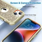 for iPhone 14 Case, Heavy Duty Full-Body Defender Protective Phone Cases Glitter Bling Sparkle Hard Shell Shockproof/Dustproof/Drop Proof 3-Layer Military Rubber Bumper Cover (Rose Red) Heavy duty protection phone case for Apple iPhone 14 6.1 inches, Not compatible with other devices, Support Wireless Charging,Three Layers Defense: High impact resistant hard PC outer shell and front screen bumper, with soft TPU inner sleeves to offer full-body protection and bring your phone safer; Screen protector is NOT included,Bling Bling Back: Beautiful smooth sparkly glitter on the back will make your phone look more shinning and attractive, cute and eye-catching; The glitters will never fade or flake off and always stay bling; The best gift for yourself and your friends,Camera & Screen Protection: The sufficient raised edge lips will protect your screen & camera from scratches and dirt when you lay your phone down, keeping your phone in a new state for a long time,Fit Perfectly: Fits snugly with your iPhone 14, not bulky; Precise cutouts for all ports, buttons, camera, and speakers; We promise a free replacement or refund if you're not satisfied with this case; Any questions, please contact us for free