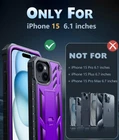 for iPhone 15 Phone Case: Military Grade Shockproof Full Protection Hard Phonecase with Kickstand - Dual Layer Matte Textured Drop Proof Rugged Protective Cover - 6.1 Inch Purple Previous page Next page