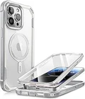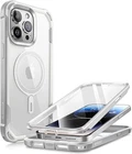 i-Blason Ares Mag for iPhone 15 Pro Max Case with Screen Protector| [Compatible with MagSafe] Clear Slim Full-Body Shockproof Rugged Bumper Case (White)