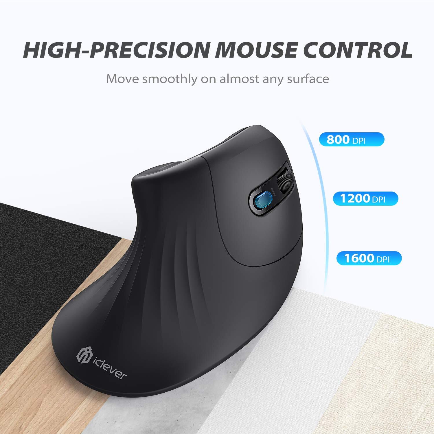 iClever Ergonomic Mouse Wireless, TM209G Wireless Vertical Mouse with 3 Adjustable DPI, Comfortable 2.4G Optical Mice for Mac, PC, Desktop, Laptop, Windows Black iClever wireless ergonomic mouse features all the advantages the good computer mouse should has: Supports natural posture The overall design of the ergonomic wireless mouse is optimized for the most comfortable, natural interaction, untwisting your wrist from its standard position into a natural ¡°handshake¡± posture. And the buttons are accessible without straining or contorting your fingers. Prevents short-term fatigue The ergonomically-designed thumb rests and grips fit the contour of your palm for maximum comfort. It enables the weight of the hand to rest on its sturdy side, instead of being painfully piled on the wrist, and therefore reduces pressure on your carpal tunnel area. Preventing long-term health problems If you've ever walked away from your computer desk with a stiff wrist or elbow, you may have wondered if it's time to upgrade to an ergonomic mouse. The ergonomic and comfortable design is perfect for reducing or even eliminating pain, making it a great mouse for people with carpal tunnel syndrome or other types of hand pain Ultimate Ergonomic Comfort: Precision-designed for optimal comfort. Each detail is crafted to perfection, fitting your hand seamlessly. The diamond-patterned waist prevents palm sweat, and the extended wrist rest promises a pain-free experience with skin-friendly materials. Ultra Precise Movement: Swift tracking on diverse surfaces. Balanced weight distribution and bottom slide pads eliminate cursor shakes. Easily adjust resolutions between 800DPI, 1200DPI, and 1600DPI with a visible DPI indicator. Efficiency in Every Click: Streamline web browsing with Backward/Forward Page buttons. Positioned above the thumb rest, a light thumb press effortlessly navigates pages, preventing wrist strain during prolonged use. Wireless Anywhere: Free yourself from cords. Simply plug in the USB receiver for instant 2.4 GHz connectivity, extending up to 33 feet. Enjoy a clutter-free workspace with no delays or dropouts, maximizing your productivity from any spot. Whisper Quiet, Maximum Focus: Minimize disruptive clicks with advanced stability. Work in a noise-free environment with the iClever vertical mouse, enhancing concentration, learning, and productivity. 1 Year Limited Hardware Warranty. Warm Tips: Requires 1* AA Batteries (not included) Shipping from the USA All of our products are shipped from the USA, ensuring quick delivery to your destination. Payment We offer the following payment methods: PayPal, credit card, bank transfer, and eBay's secure payment system. Free Shipping & Free Returns Shipping within the USA is FREE. Additionally, any return is absolutely free for you. Risk-Free Purchase You have the option to return an item within 30 days without any justification. We cover the return shipping costs! Fast Shipping We ship immediately upon receipt of payment. Generally, the package is delivered within 2-3 days in the USA. If it takes longer, we will contact you. Quality and Costs Made in Europe, USA, China No customs fees or additional charges Total satisfaction guarantee Invoice with declared VAT available upon request in .pdf format Feedback Your feedback is very important to us. After you pay for your purchase, you will automatically receive positive feedback from us.