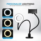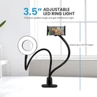 iDance LED Ring Light with Cell Phone Clip Stand Holder, 3.5", Grip Flexible Long Arm Gooseneck Bracket Mount Clamp with Bluetooth Remote Control for Desk, Bed, Compatible with iPhone and Smartphone ADJUSTABLE LIGHTING MODES AND BRIGHTNESS LEVELS - Introducing the 9cm LED Ring Light, boasting 3 lightning modes and 10 brightness levels for versatile illumination, perfect for selfies, live streaming, photography, YouTube recording, and vlogs. COMPATIBLE WITH A VARIETY OF DEVICES - Powered by USB and equipped with a Bluetooth regulator within the 7-in-1 Media Station, it ensures seamless operation with most USB-compatible devices, allowing precise control over brightness and power. ENHANCE MULTITASKING EXPERIENCE - featuring an Easy Clamp Bracket for quick installation on table sides, combined with a Universal Phone Holder, 360-degree rotating PDA holder allow for effortless customization of brightness and lighting purposes. CRAFTED WITH HIGH-QUALITY MATERIALS - Comes with an integrated charging cable, and two strong flexible long arms for optimal positioning, featuring 360-degree rotation for both the cell phone holder (14 inches) and the LED ring (25.6 inches). COMPANION FOR CREATORS ON THE GO - This compact setup measures 10.5cm in diameter, 7.5cm in width, and 66.5cm in height, weighing just 0.6 kgs, making it ideal for on the go content creation. Elevate your creative endeavors with our LED Ring Light kit