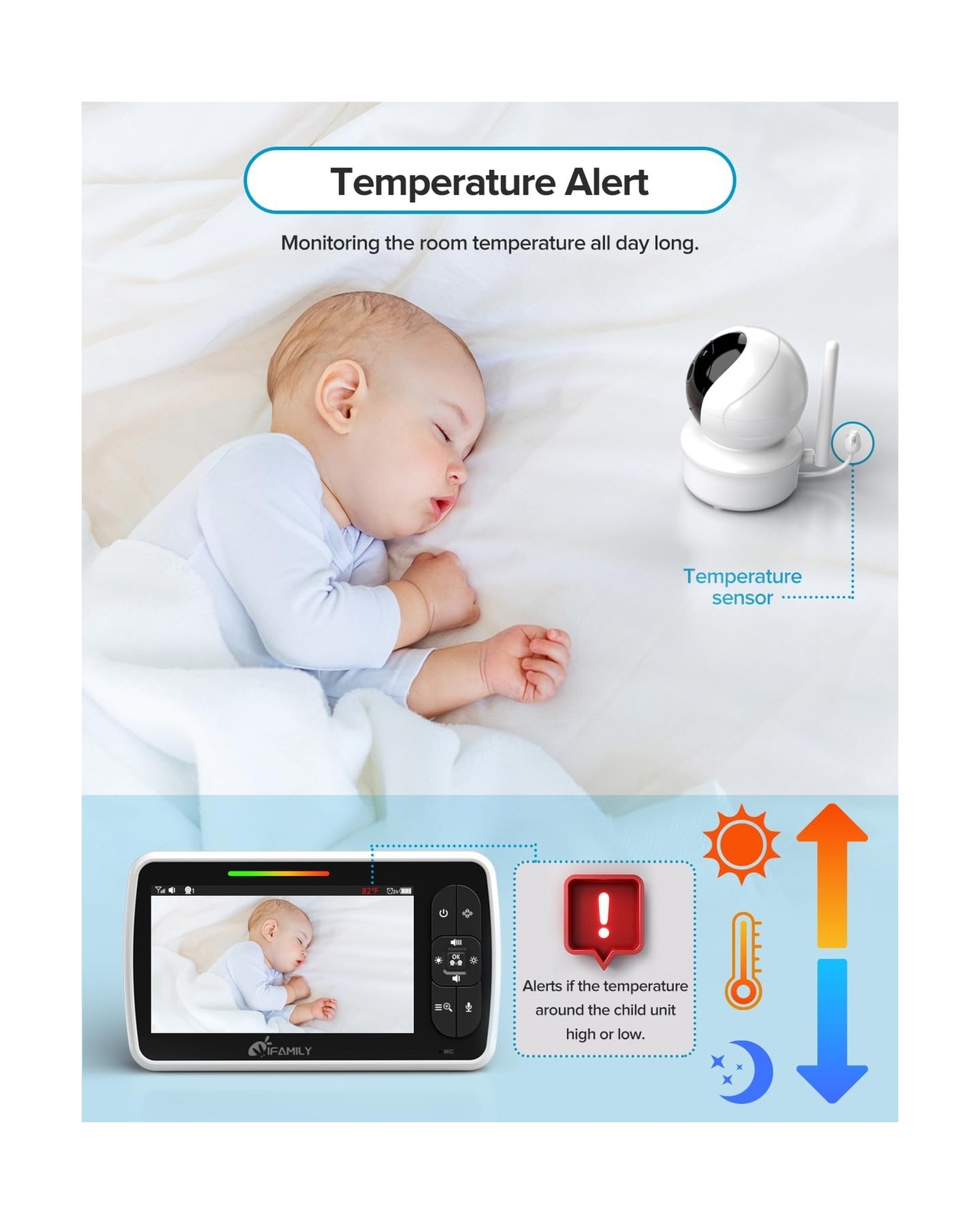 Brand New iFamily Baby Monitor - Large 5" Screen with 30Hrs Battery Life - Remote Pan-Tilt-Zoom;No WiFi, Two-Way Audio, Night Vision, Temperature, Lullabies, 960ft Long Range Baby Monitor with Camera and Audio Manufacturer model: SM650 Full Room View Baby Camera with Convenient Control: Immediately pan the room, zoom in on your baby and tilt the camera to view virtually any open space in your nursery, childs bedroom or any space in your home. See everything in view on the crystal clear 5 large monitor screen for peace of mind. Wireless Video Baby Camera Monitor: With enhanced 2.4GHz FHSS, this smart baby monitor operates with no wifi. The wireless connection safeguards your privacy and ensures your babys safety. With a private live-stream and no accounts or apps to download, theres no risk of hacks. Simple set up and instant use. Superior Night Vision Display: Invisible high-powered infrared LED lighting illuminates your babys face without interrupting their sleep. Youll love the vibrant imagery, providing you with a luminescent and distinct view of your baby in the video feed, even in the darkest room. Exceptional Features for Comfort: Anticipate your babys needs and make adjustments for their comfort to encourage longer sleep. With a room temperature display, two-way audio, and instant-play lullabies, take proactive steps to soothe your baby back into sweet dreams. What a thoughtful baby shower gift! Feature Rich Baby Cam: View and hear your baby up to 960 feet away. Additional smart benefits - disconnection notification, eco mode voice activation to save battery life, up to 4 cameras expansion option, sound activated LED lighting, auto camera scan view and alarm/timer. Configure baby monitor via wall mount or on tabletop. Description Shipping and Handling Please allow 5-7 business days for the package to arrive, regardless of buyer location within the US. We will provide an online tracking number to you once the item has been shipped. It may take a few business days for our automated system to process the tracking number onto eBay. However, this will not affect the shipping times. Return Policy All our products are brand new and sealed. All items qualify for returns within 30 days of receipt. Feedback We take our reputation seriously. If you have any questions or concerns, please contact us and we will respond back to your message within 24 hours.
