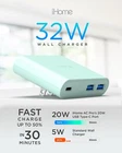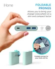 iHome 32W AC Pro Multi Port USB Wall Charger Block - Charging Station for Multiple Devices with 3 USB Ports (1 USB-C, 2 USB-A) - Fast Charging, Universal Compatibility (Mint) Product Details Color: Mint Brand: iHome MPN: IHCT5102M UPC: 812350265622 EAN: 0812350265622 Brand: iHome Connectivity Technology: USB Connector Type: USB Compatible Devices: Cellular Phones Compatible Phone Models: Cellular Phones Included Components: 1 x USB-C cable Special Feature: Travel Color: Mint Input Voltage: 120 Volts Mounting Type: Wall Mount Package Dimensions: 4.37 x 3.54 x 0.94 inches Item Weight: 4.2 ounces Item model number: IHCT5102M Date First Available: September 22, 2023 Manufacturer: iHome by Lifeworks Technology Country of Origin: China Charging Station for Apple Devices : With 3 total USB ports, this iHome charger can power up to 3 devices simultaneously. These chargers for multiple devices are perfect for your new iPhone, iPad, Apple Watch, or AirPods and are a must-have for Apple device owners. iPhone Fast Charger : The USB-C port supports power delivery, allowing you to charge 2x faster and up to 50% in just 30 minutes. Ideal for quick charging needs. Ultimate Portability: Featuring foldable prongs and a flat, slim design, this compact type c charger easily fits behind tight spaces and furniture, unlike your typical bulky usb c charger block. It's the perfect mobile device & ipad charger for travel, the home, or the office. Universal Compatibility: iHome's 32W flat USB charger block works with all USB charging cables, and serves as a USB charging station that can power any mobile device. Sleek Socket Design: The iHome dual port USB-C charger with 2 USB-A ports showcases a sleek socket construction. It's a stylish yet efficient addition to any charging station.
