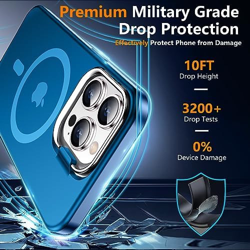 for iPhone 13 Pro Case,with Camera Stand 2 Pack [Tempered Glass Screen Protector+Camera Lens Protector] [Magsafe Compatible] Translucent Matte Phone Case,Dark Blue �Compatibility�This magnetic camera stand case is only designed for iPhone 13 Pro, and its silky material and slim design won’t add any bulks for your phone.,�9H Protector�The iPhone 13 Pro case comes with 2pcs tempered glass screen protectors and camera lens protectors which gives full protection of your phone. SPIDERCASE designed for iPhone 13 Pro phone case offers full coverage, drop protection and scratch resistance for your rear camera lens and screen protector. Moreover, 99.99% high transparency preserves the original quality of the pictures or videos.,�Invisible Camera Stand�The iPhone 13 Pro case with stand would definitely be a great changer for your easy life. With an aluminum alloy built-in invisible camera kickstand, this iPhone 13 Pro phone case props your phone up anywhere to watch videos/ quick movies without adding any bulks...Moreover, the sturdy kickstand structure is tested to be durable enough for up to 5000 times of use and it is 0-120° adjustable for a comfortable view.,�Ultra Strong Magnetic Power�The magnetic iPhone 13 Pro case is compatible with all MagSafe accessories. With a built-in magnetic ring that perfectly aligns with MagSafe accessories, this iPhone 13 Pro magnetic case offers seamless attachment and faster wireless charging. And thanks to the embedded 38 N52 strong magnets, this iPhone 13 Pro case magnetic is tested to have a 200% stronger magnetism than other magnetic cases.,�Military Grade Drop Protection�The shockproof iPhone 13 Pro case is everything you need to protect your phone. With soft impact-absorbing bumper,thsi case is SGS certified to give your phone an all-round protection keeping your phone safe from 10 FT drops on hard cements.