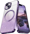 iPhone 14 Case| iPhone 14 Phone Case [ Compatible with MagSafe ]| Clear Gradient Glitter Sparkly Shiny Women Girls Shockproof Non-Slip Bumper Protective Cover for iPhone 14 6.1" 2022| Purple